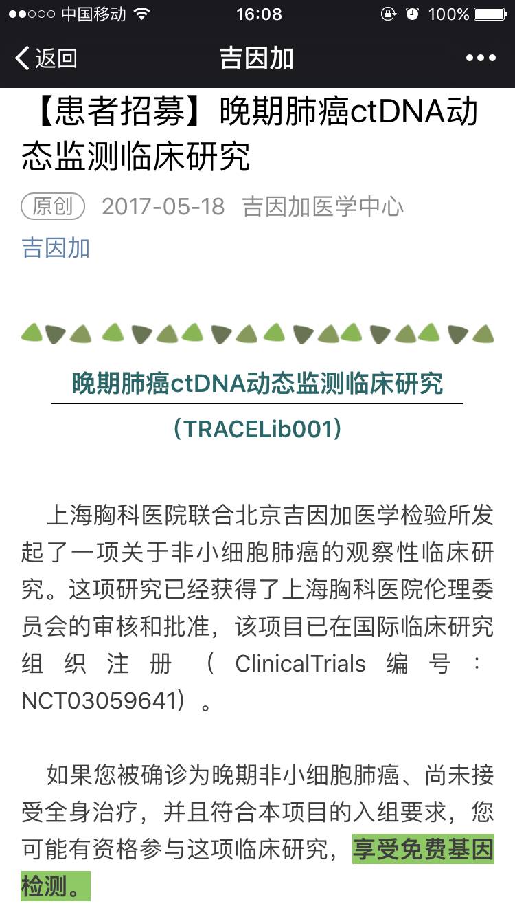 患者符合条件的可以免费基因检测了!
