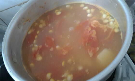 罗宋汤:番茄,马铃薯,玉米粒,猪骨头(奶奶腌制了,不做也不行)有营养吧😄你也试试吧,很开胃的。。
