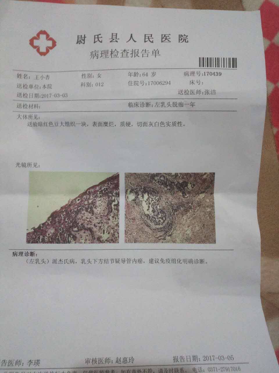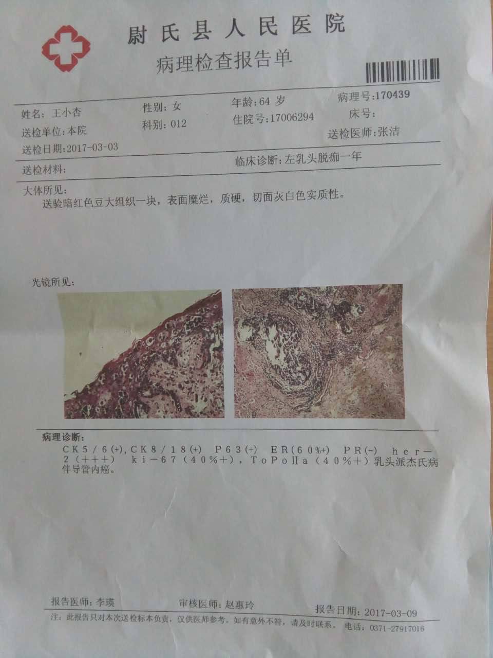 姐妹们帮忙看下同学母亲的情况