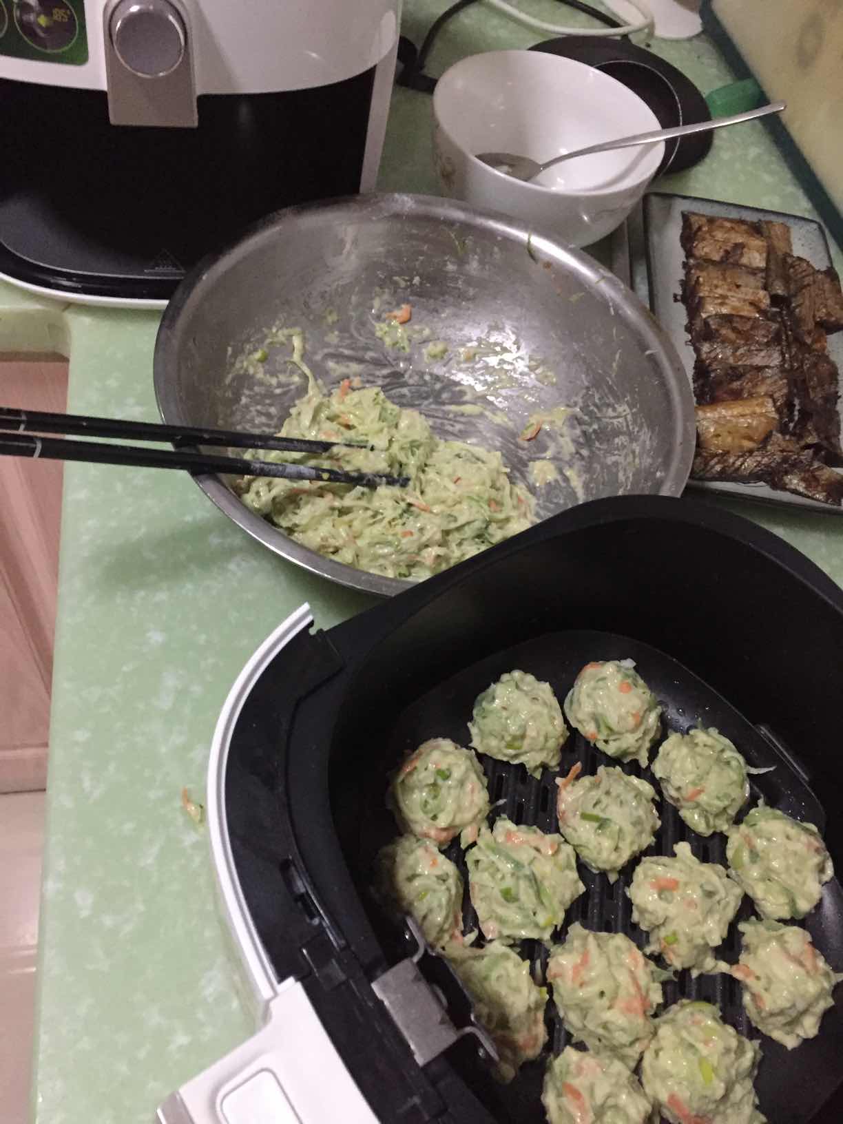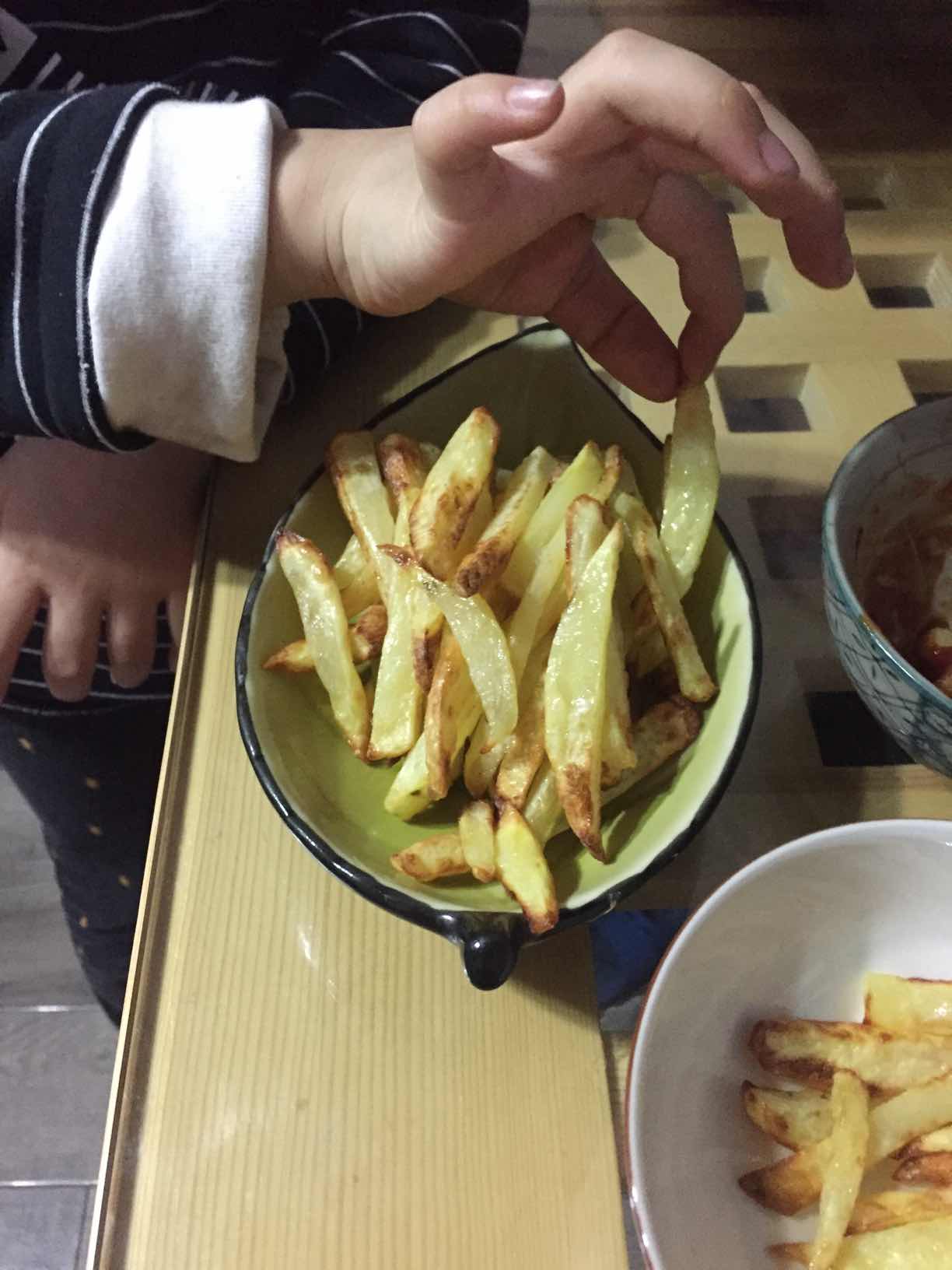 小朋友今天想吃,就把搁置的空气炸锅请出来了,然后就一发不可收拾的做了些,空气炸锅当时入的时候就是为了炸而买的,后来又开发了好多炸品,主要理念就是少油,无油烹饪,经常用的功能是煎鱼,素炸丸子,无油就可以,很健康。但是炸想要脆要把切好的冻过再炸才好哦!我的没有冻所以看起来软啪啪的。