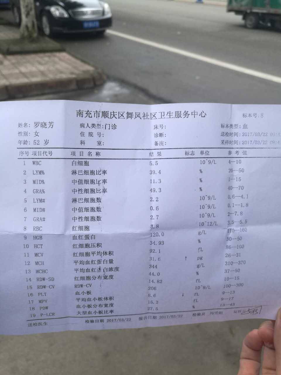 化疗前的呢?没有对比就没有参考,如果化疗前后白细胞下降幅度太大,就要考虑二化会不会下降得太厉害,白细胞7天左右可以升上来。红细胞如果下降太厉害要留意,生长周期是4个月