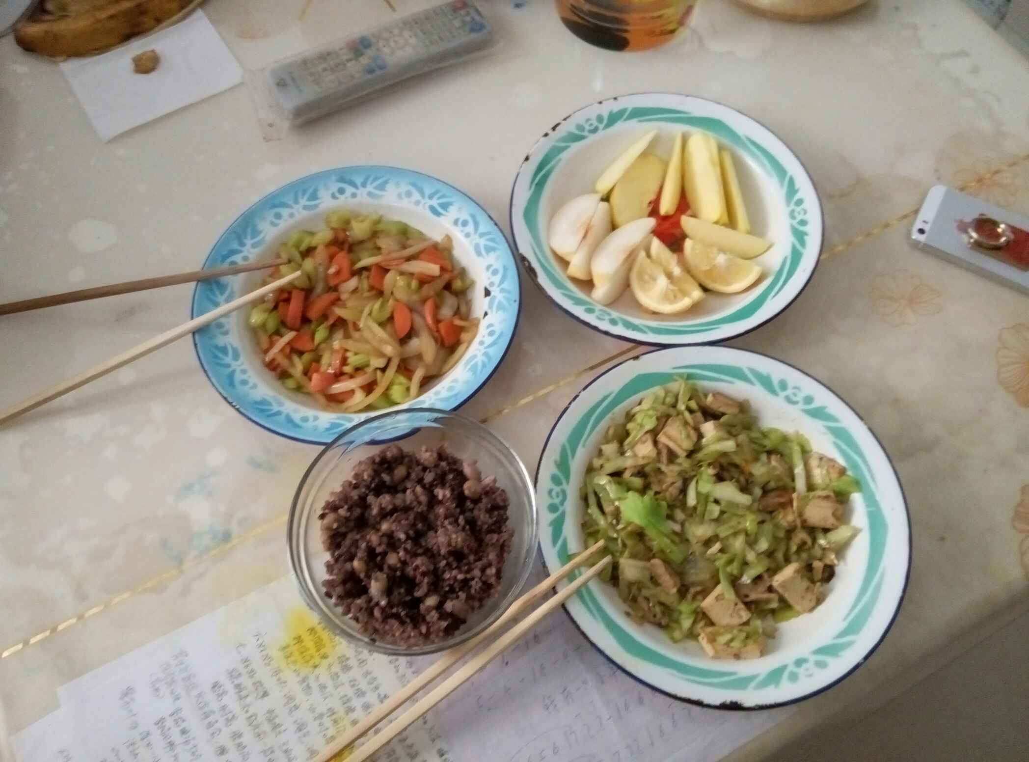 从来没有晒过饭,今天也来晒晒,两个素菜,一碗杂粮饭,一盘水果,杂粮饼真心的不太好吃啊今天第一次做,没办法为了身体也吃下去了!你们觉得杂粮饭好吃吗