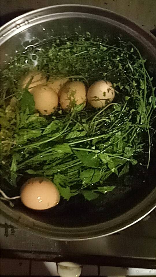 哈哈哈,在情侣园摘的荠菜花子,回来煮鸡蛋~😍😍