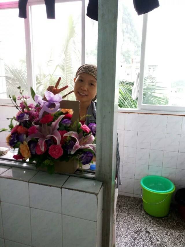 从2016年2月17日的乳癌可疑到2月28日的确诊。这一过程的煎熬,忧虑,恐惧无法言说。我想我该怎么办?我要怎样才能战胜这一不幸?还好家人、朋友一直陪在我身边,给我很多鼓励和帮助!我想,我一定要坚强,不管结果如何,当下我一定要勇敢乐观地活给爱我的人看!于是,我主动找我的医师沟通、咨询。对自己的病情有了大致了解。然后催着医师给我上药。医师对我竖起大拇指,说,你会是我治疗过恢复最好的一个。我也笑着对她说:谢谢,我不会辜负你的期待!于是,想象中艰难险阻的化疗开始了。也许心中一直有个声音在呐喊“我能行,我一定不能倒下”。我竟然觉得没那么难受,还轻松地对病房的人说:医师总是把副作用夸大,其实没那么难!住院的日子,我如往常那样按时起床,到附近的公园走走,白细胞低到0.8时我就在医院楼下或科室的走廊里慢走或照着视频做健康操!来探视的家属经常疑惑地看着我,应该在猜测我是病人呢还是陪护的呢?看光头像病人,看精神状态像正常人。我无暇顾及别人的感想,若无其人似的做我的锻炼!通过两次化疗之后,肿块变小了很多,医师说可以进行保乳手术了。你是继续化疗还是先手术?我想了一下说想听听你的建议,然后根据医师的分析,我选择做了手术。手术很顺利,我清醒过来也快。回到病房声音有些沙哑,但我一直对着家人朋友微笑!她们都说我好棒!第二天拨尿管后我就在床边慢慢走了,每天坚持进行两次科室制定的康复操!六天之后我的引流管就可以拔掉了!我又像没事似的逛逛医院附近的公园,有时也会加入广场舞部队中去