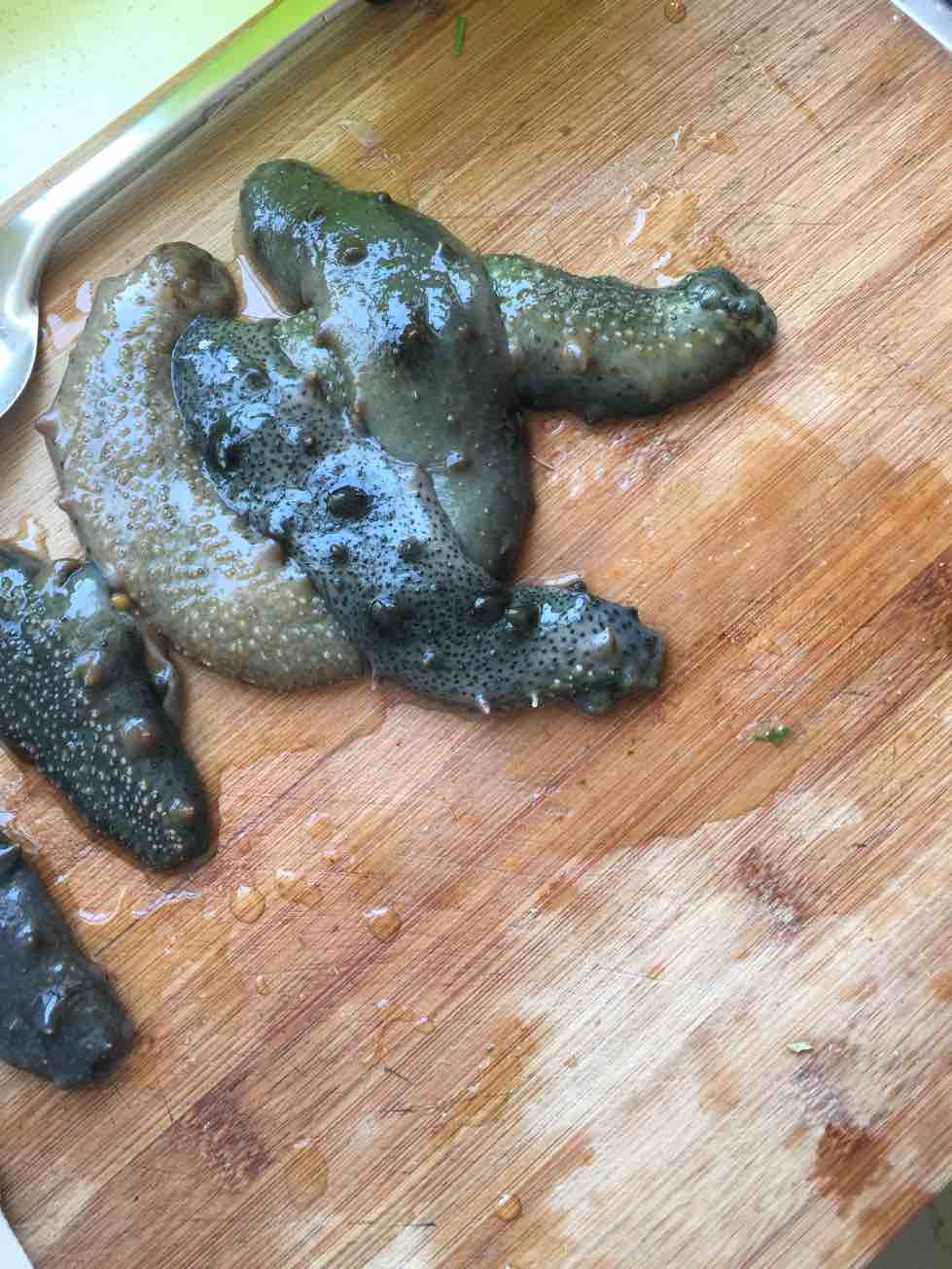 看姐妹们吃海参 说营业挺高的 老公让朋友朋友买的活海参 回来一看两个人傻眼了 都不会弄 老公网上查半天 又弄半天 感觉想吃点好的 真难