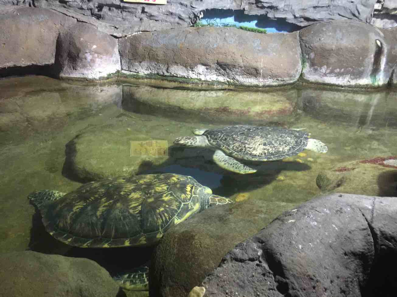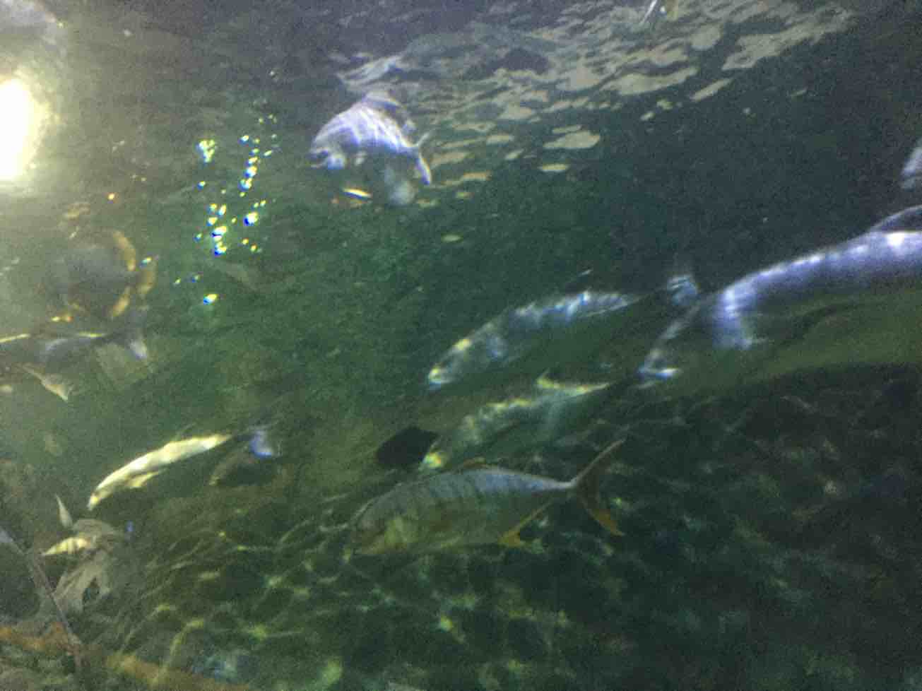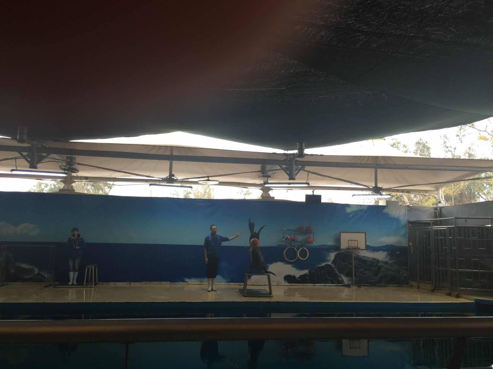 下午一点多,我们花一百六团价购了两张自费的海底世界门票,观赏了海底隧道和楼内各类海洋生物。在二楼的表演厅里,我们观看了一场妙趣横生的海狮表演。解说员小妹要海狮亲一下训导帅哥,小海狮头一甩表示不屑,游客都鼓掌鼓励表达爱看的意思,小可爱还真的羞怯的亲了一个。