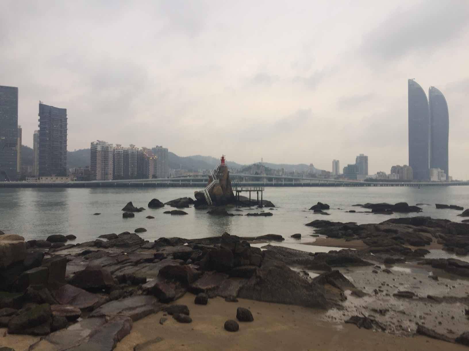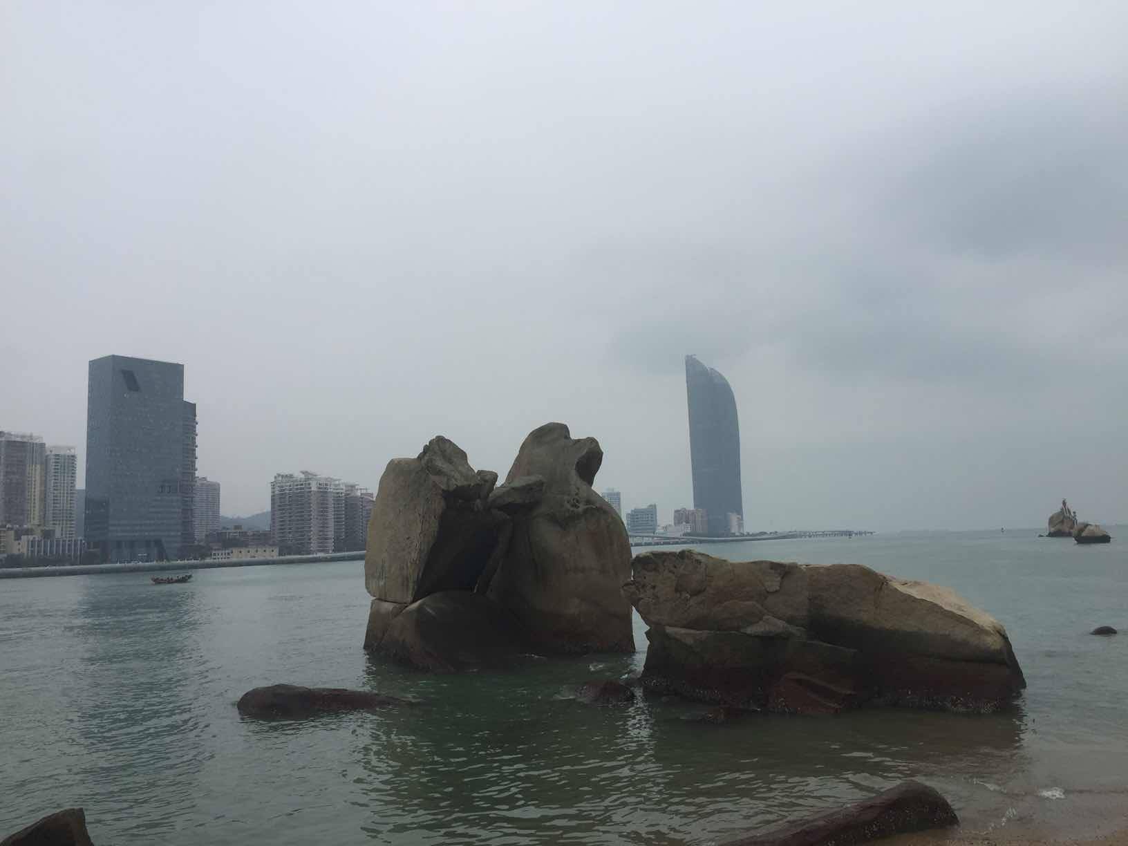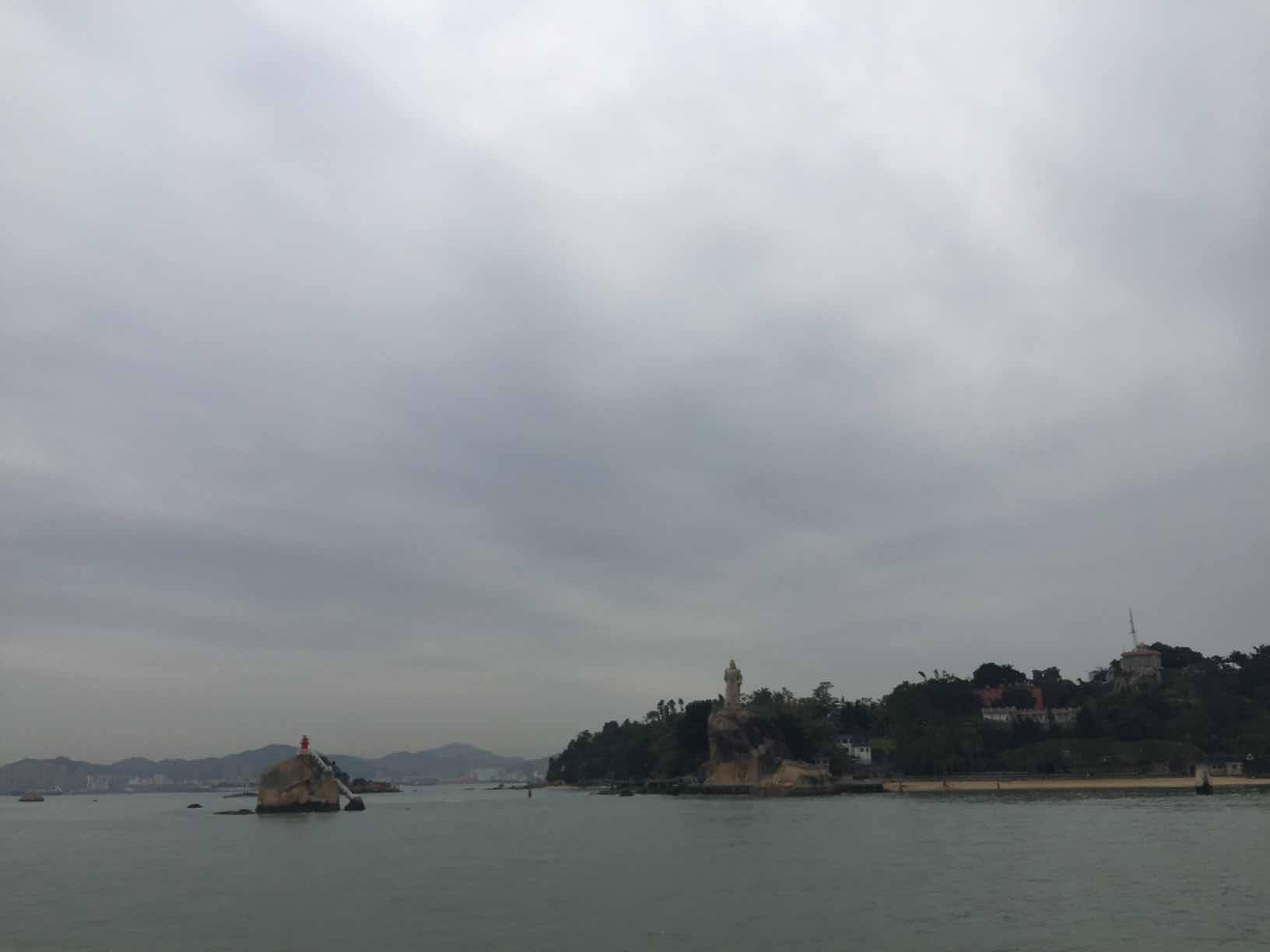 自由活动时间,我去皓月园自费游玩,老太婆经不起这样的折腾,告饶后在路边等候。在海边我一步两阶爬到岩石上,欲与民族英雄郑成功一起抬头凝望远方。仰头一看吸了口冷气,脸色凝重的郑公高大雄伟,饶是农夫再逞强,架上几道人梯也无法与爷比肩。