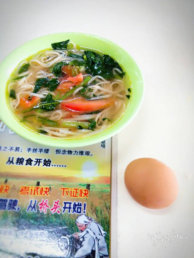 我刚吃过面条加半个鸡蛋。
