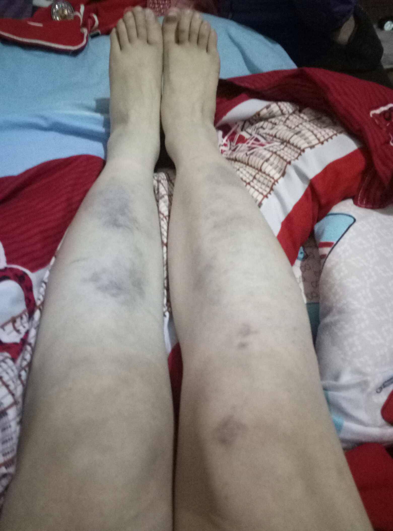 刚才脱衣服准备睡觉,赫然发现自己的腿又成这个样子了