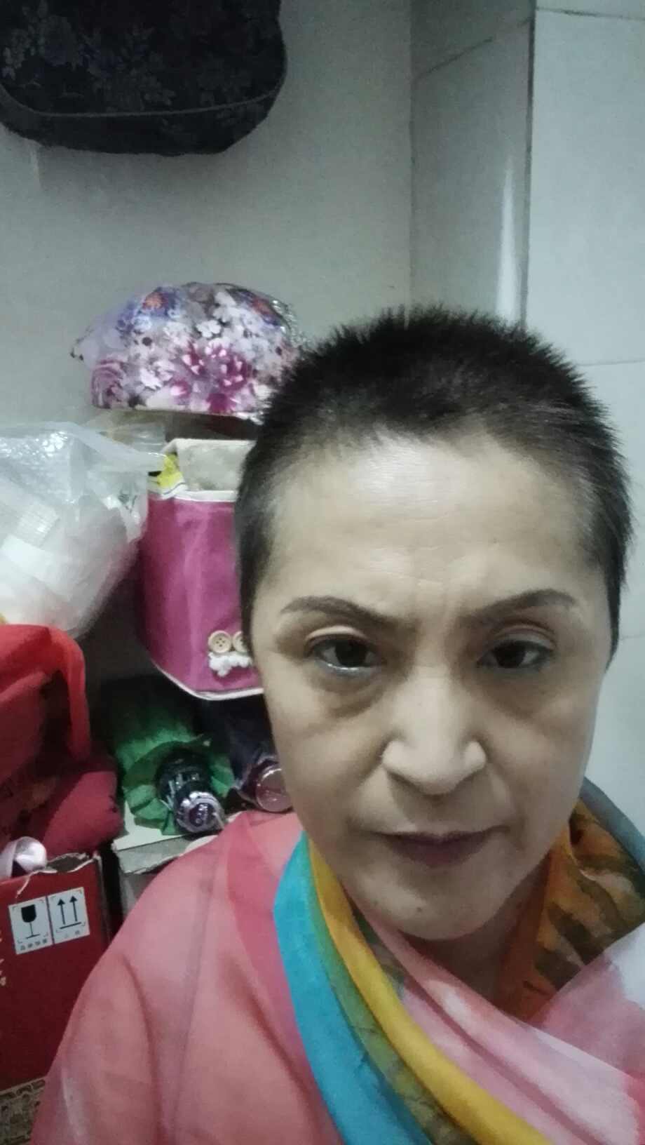 16年11月份做的手术到现在以有五个月了,之前的头发又厚又黑,发质也好,从第一疗十多天后就开始掉头发始终不舍得剃,到三疗就没剩多少了,才下决心都剃了,难过了好长时间,不愿意出门,也不想见任何人,后来在医院里姐妹们都是如此,也就慢慢的适应了。这是五疗后感觉不在掉发了又剃了一次到现在快要打第八个疗了,感觉长的很快,不到两月又这么长了,不知放疗还能掉不,但愿不在掉了,到夏季就不用戴帽子了,现在感觉这发型还不错。