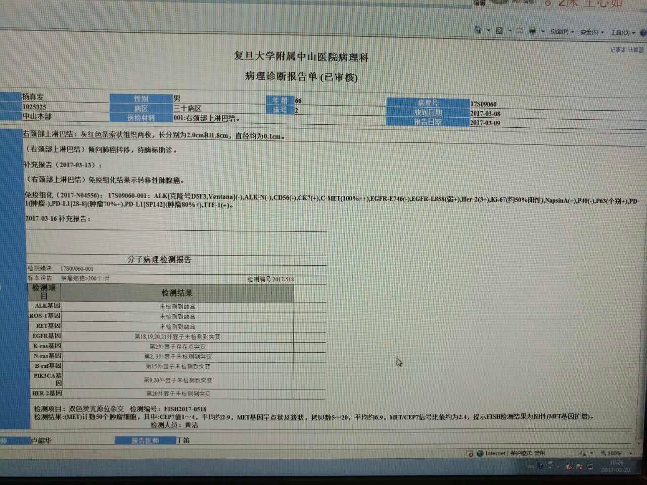 我父亲66岁,3月1日因突发脑梗入院,做了肺部增强CT、腹腔检查、胸腔检查、骨扫描、基因检测后确诊肺腺癌3B-4A,并已经淋巴转移,已经没有手术机会,基因检测:KRAS基因第2外显子存在点突变、MET基因扩增。现在医院化疗。请问病友们,有什么靶向药可以吃吗?
