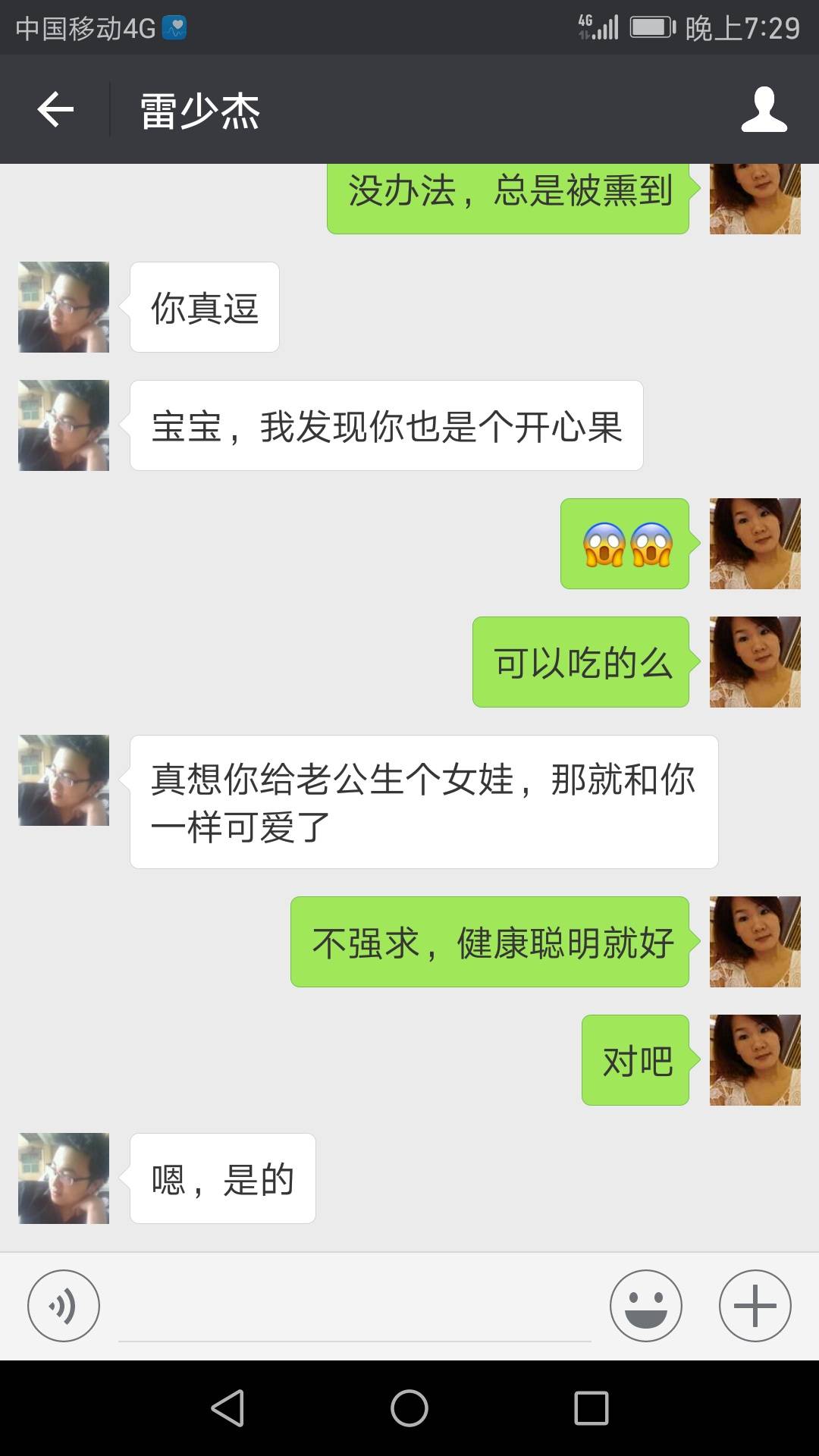 快三个月了,孕吐还没结束,只要宝宝能顺利健康出生一切都值得。觉得我和老公生活不吵闹很幸福和谐,再有个宝宝就是美满了!生活中我有点任性小脾气很感谢他很包容我,我跟老公说是不是我总欺负你,所以我怀孕孕吐严重呢,以后我会对你好点!他总是那么包容我觉得我好多优点,他总说希望宝宝像我,他就很幸福!我希望宝宝不要像我,鼻子太大眼睛太小,呵呵😊(幸福美满和谐的家庭是我的追求)最喜欢的一句话:祝天下有情人终成眷属!