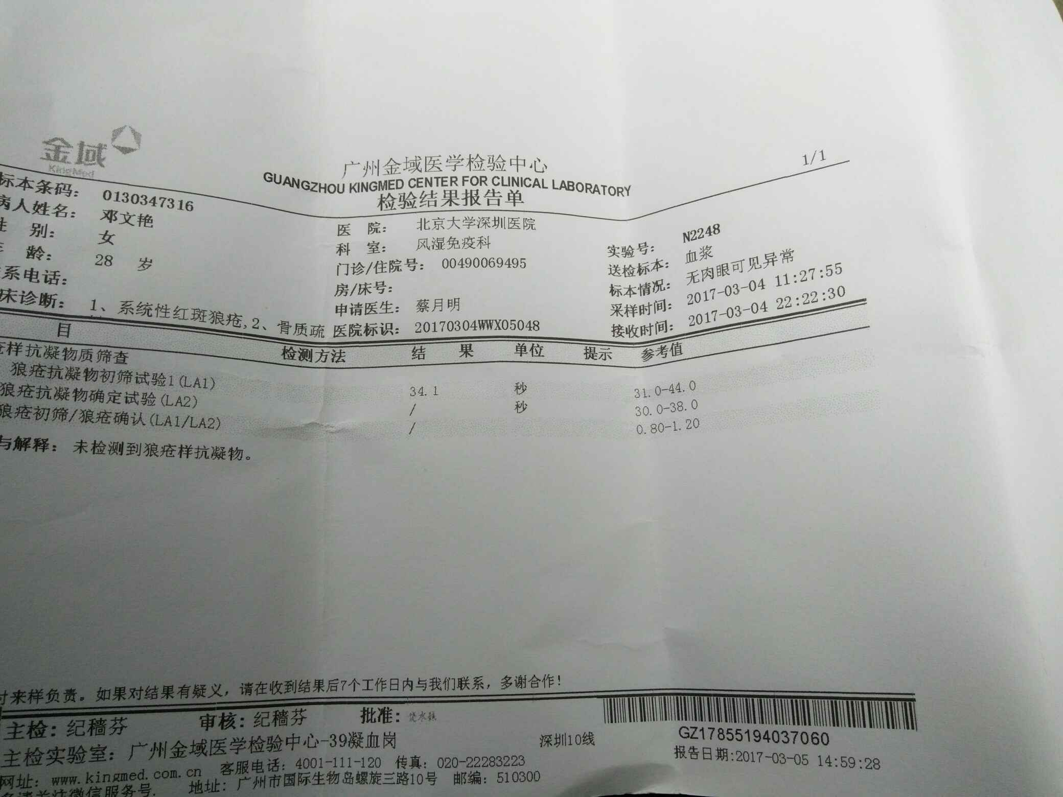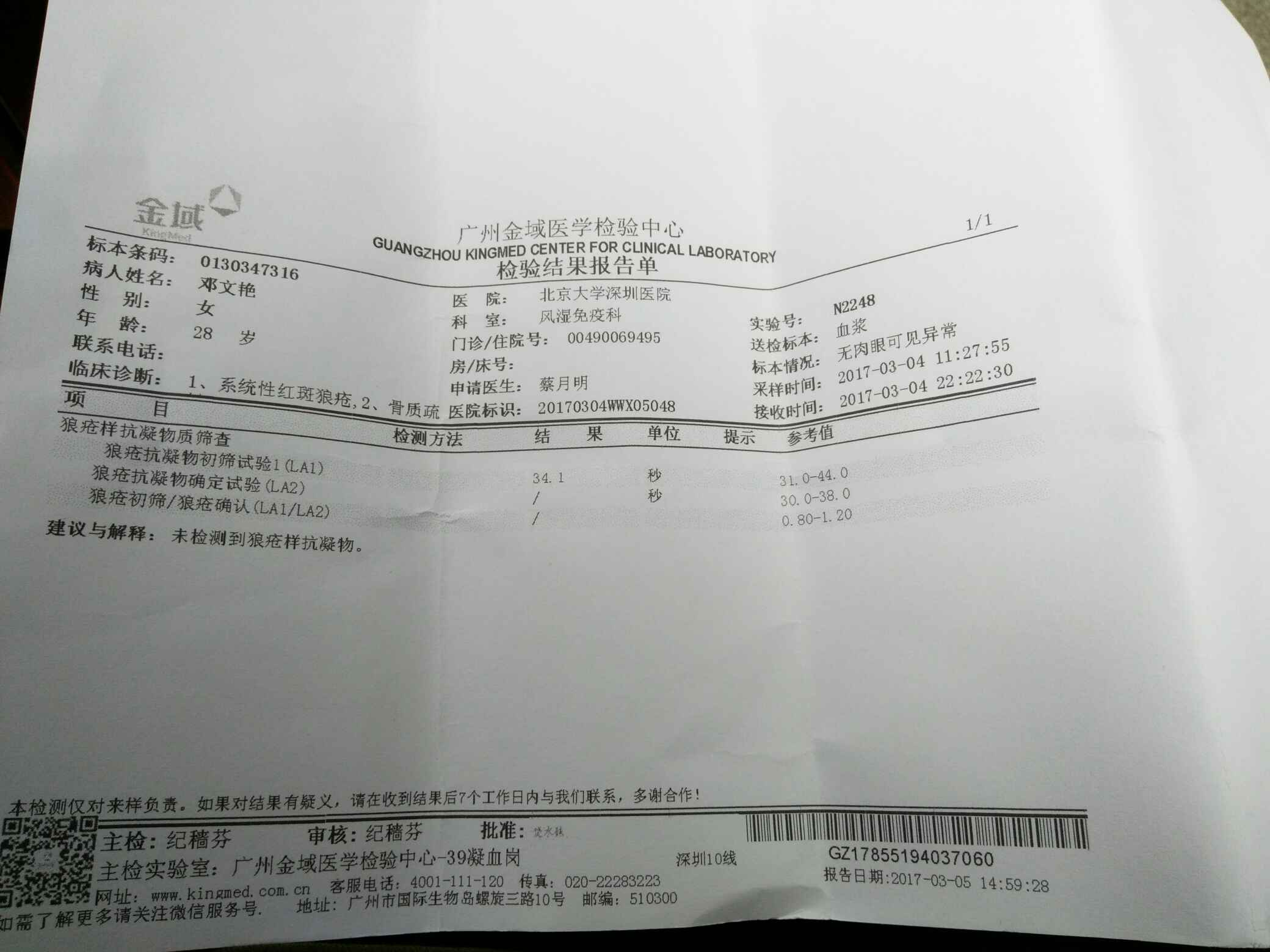 我上周产检也查狼疮抗凝物了,都正常