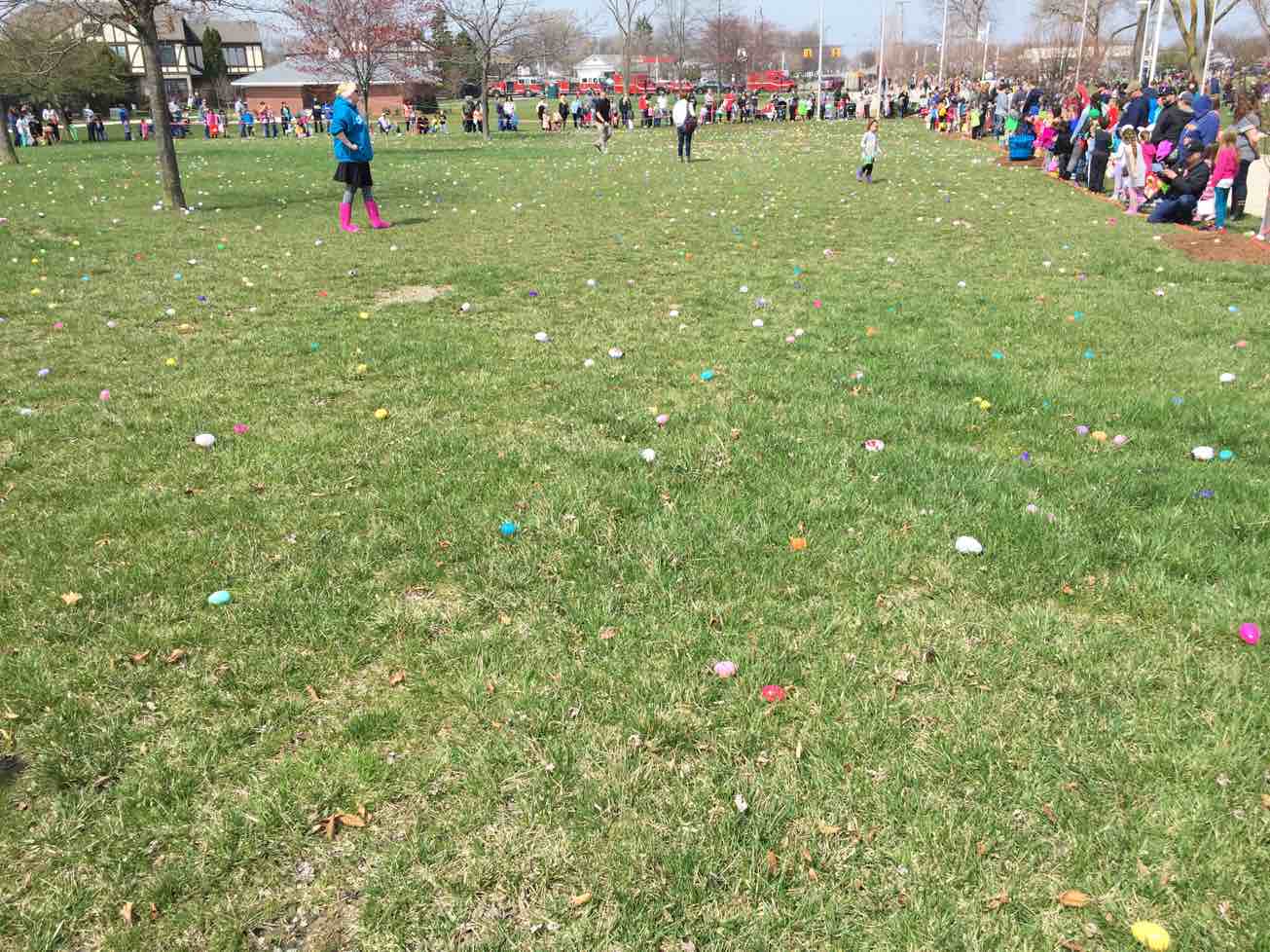 周末是复活节,从周五开始各种小孩子的egg hunt 就开始了。我们选了一家离家开车十分钟的公园去玩。公园人挺多,公园门口警车消防车救护车排着队,就怕人太多有人受伤。公园里划了三个区,大孩子区,3-5岁儿童区,还有三岁以下幼儿区。不是很拥挤,保证每个孩子都有蛋。