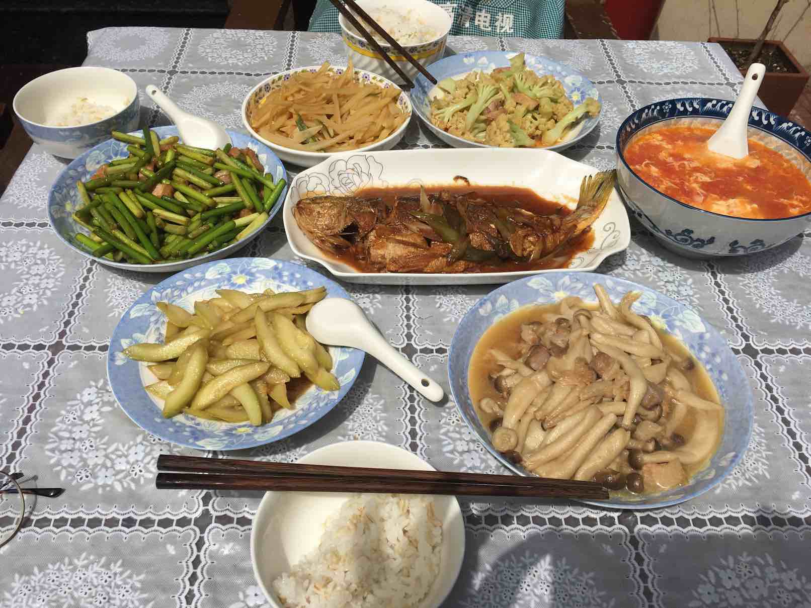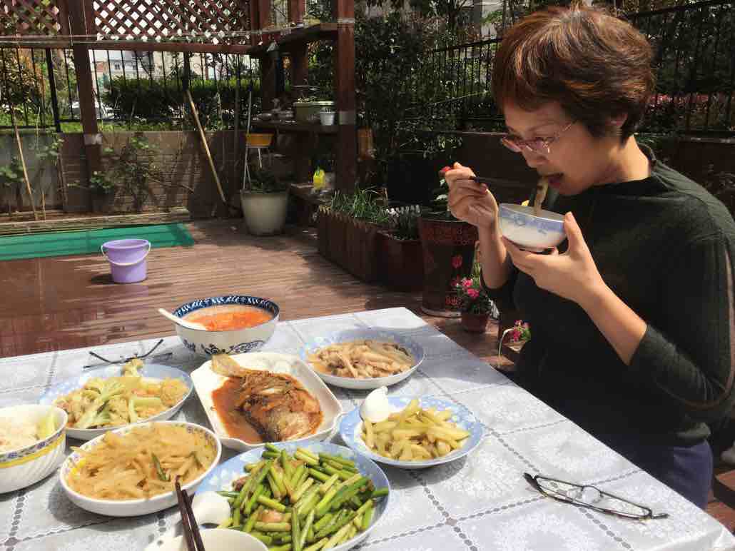一场绵绵的春雨🌧️从昨晚🌚一直下到中午🏞,午觉醒来天空虽不蔚蓝但也阳光明媚🌈🏞🏞,喜欢晒太阳🌅🌅🌅☀️☀️☀️的我怎么能浪费这么好的的阳光☀️搬桌子🍱出来在院子吃午饭