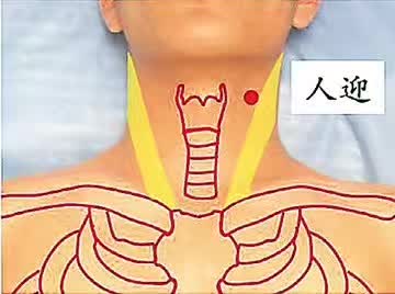 位置:前颈喉结外侧大约3厘米,颈总动脉搏动处。