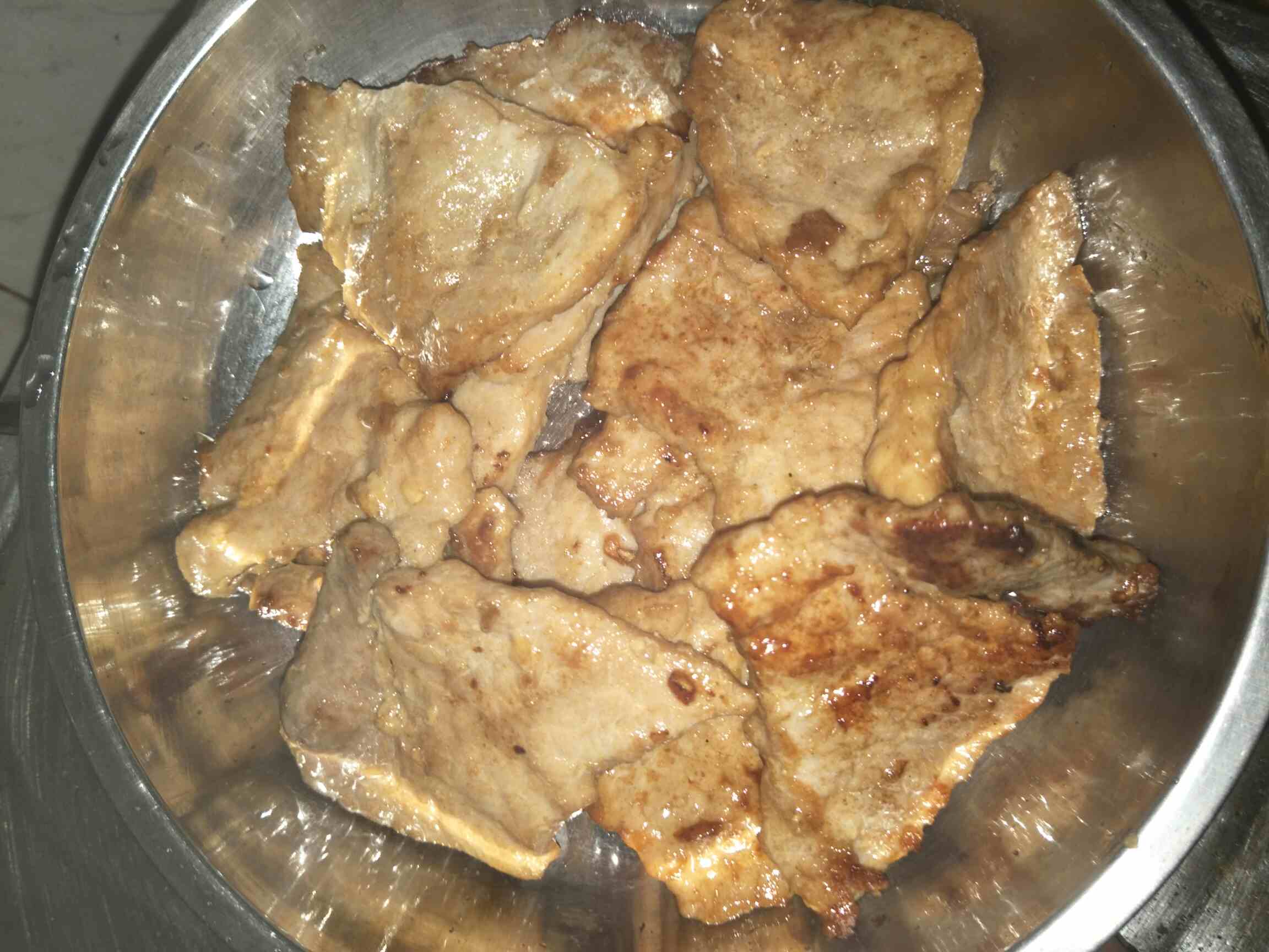 我这个呢,是大腿上的那个肉肉,切成一片片,就成猪扒啦,拍一拍就好啦😄简单,好吃,不怕没牙嚼不动,对不对