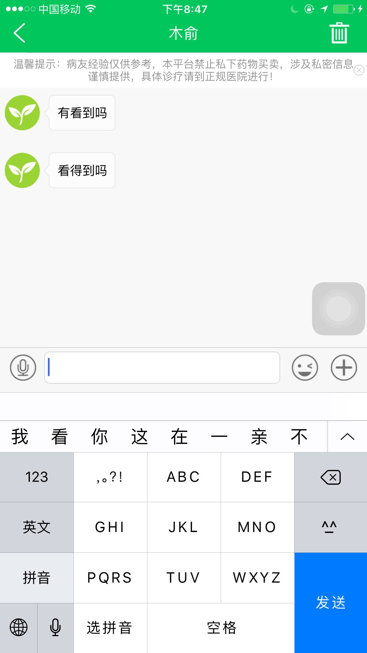 觅建收不到信息,也发不出信息,发出后隔一会儿就变空白