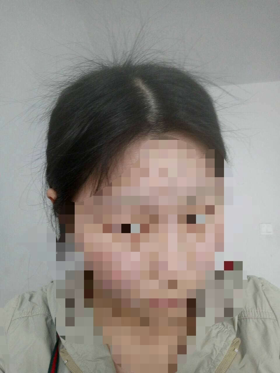 我的头发也这样,头顶都是短头发,呆毛哈哈,两边还有两个角