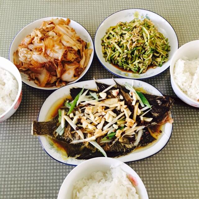 今日午餐:油泼鱼、呛白菜、黄瓜拌虾皮。还有前天中午做了炸里脊,也一并发上来了。里脊切片放姜丝、料酒、生抽和花椒粉腌制,再调面糊,面粉和淀粉1比1,再加入盐、花椒粉和适量花生油,油热后炸制即可。