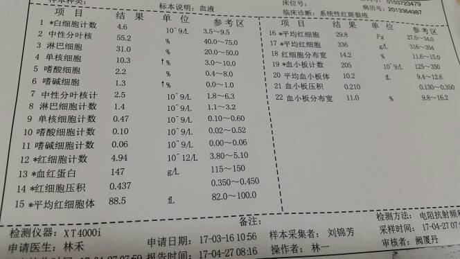 今天复查回来了,帮我看看吧,这次尿液蛋白质有1 以前都是阴性,医生说是吃激素久了会骨质疏松,我是2年多了都是一天吃一片激素,所以要我下次去做24小时尿微量白蛋白.,就是想问下装这尿的瓶子得多大,你们是去买的吗?如果去复查提前一天把这弄了放在那可以吗?帮忙看看化验单