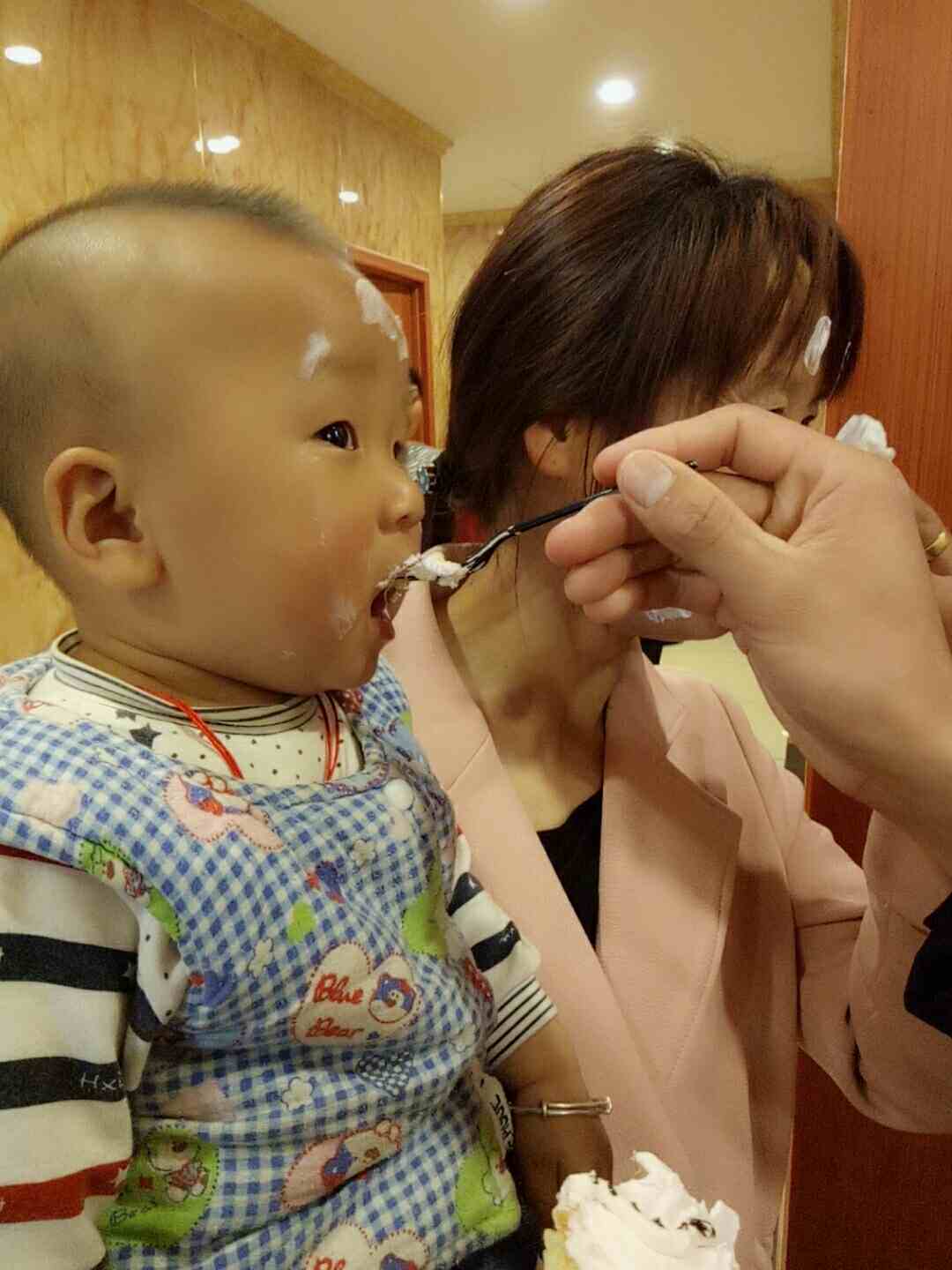 接着吃蛋糕,我的妈呀,蛋糕到处抹脸,结果都成花猫了