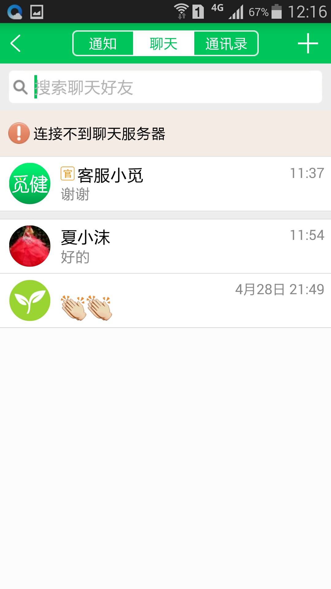 刚刚我登陆了聊天系统,又不可以聊天了!我截图了!谢谢小沫!