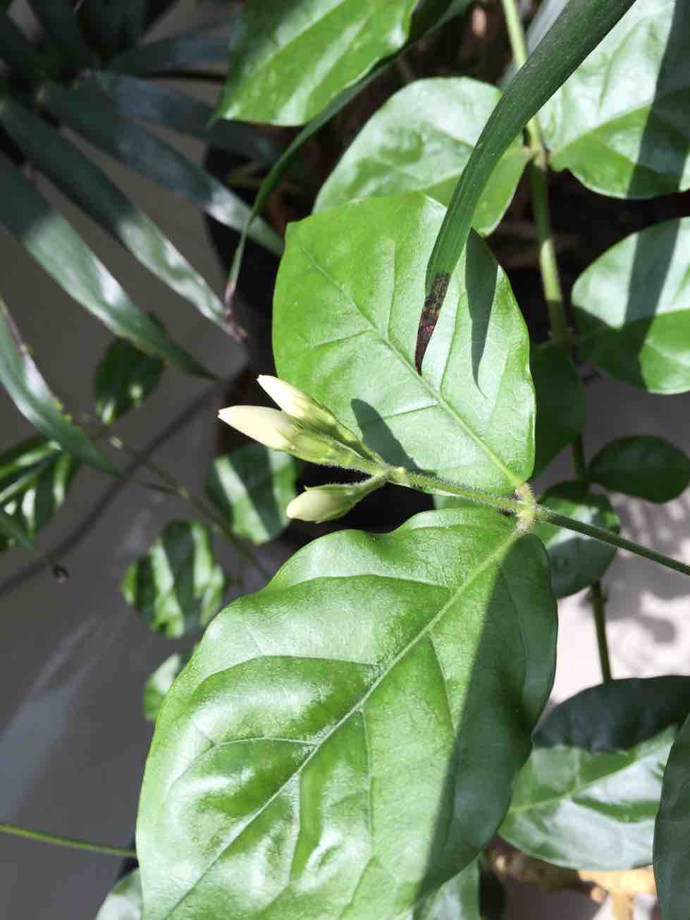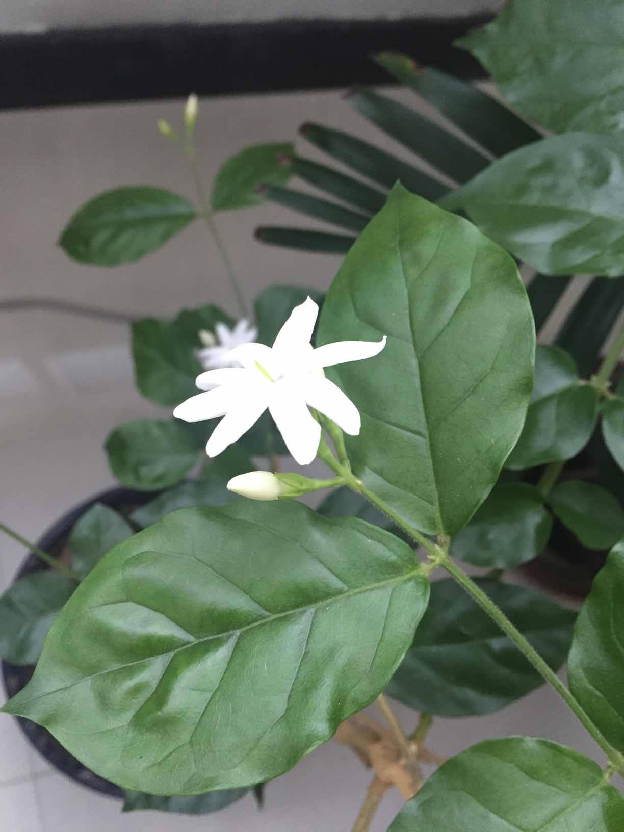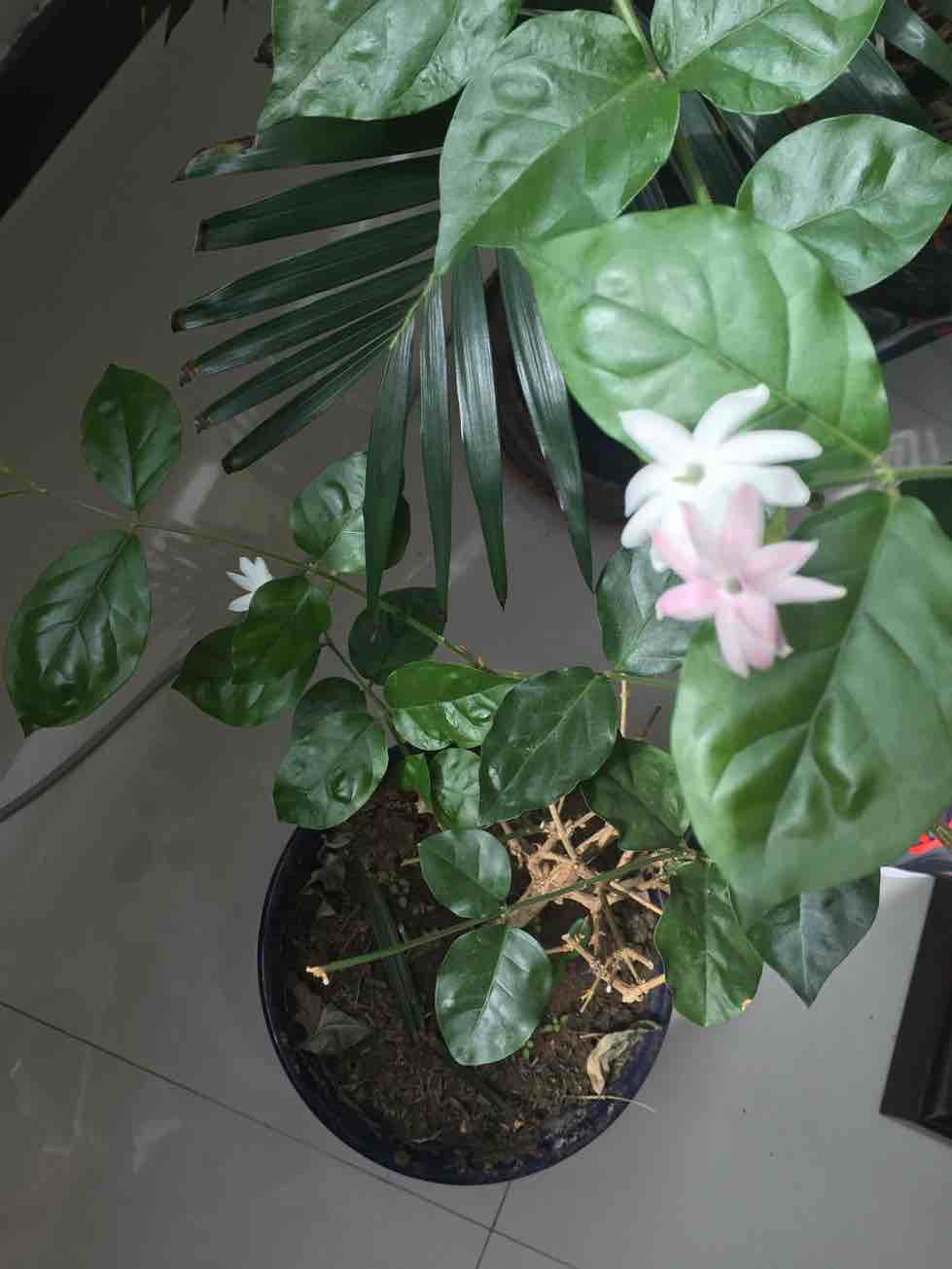 茉莉花每年开花二次、现在是第一次开花、有白色的、有紫色的。已经养近三年、很喜欢这种花香。可能开的少、暂时味不太浓、待全部开放就会满室飘香了。
