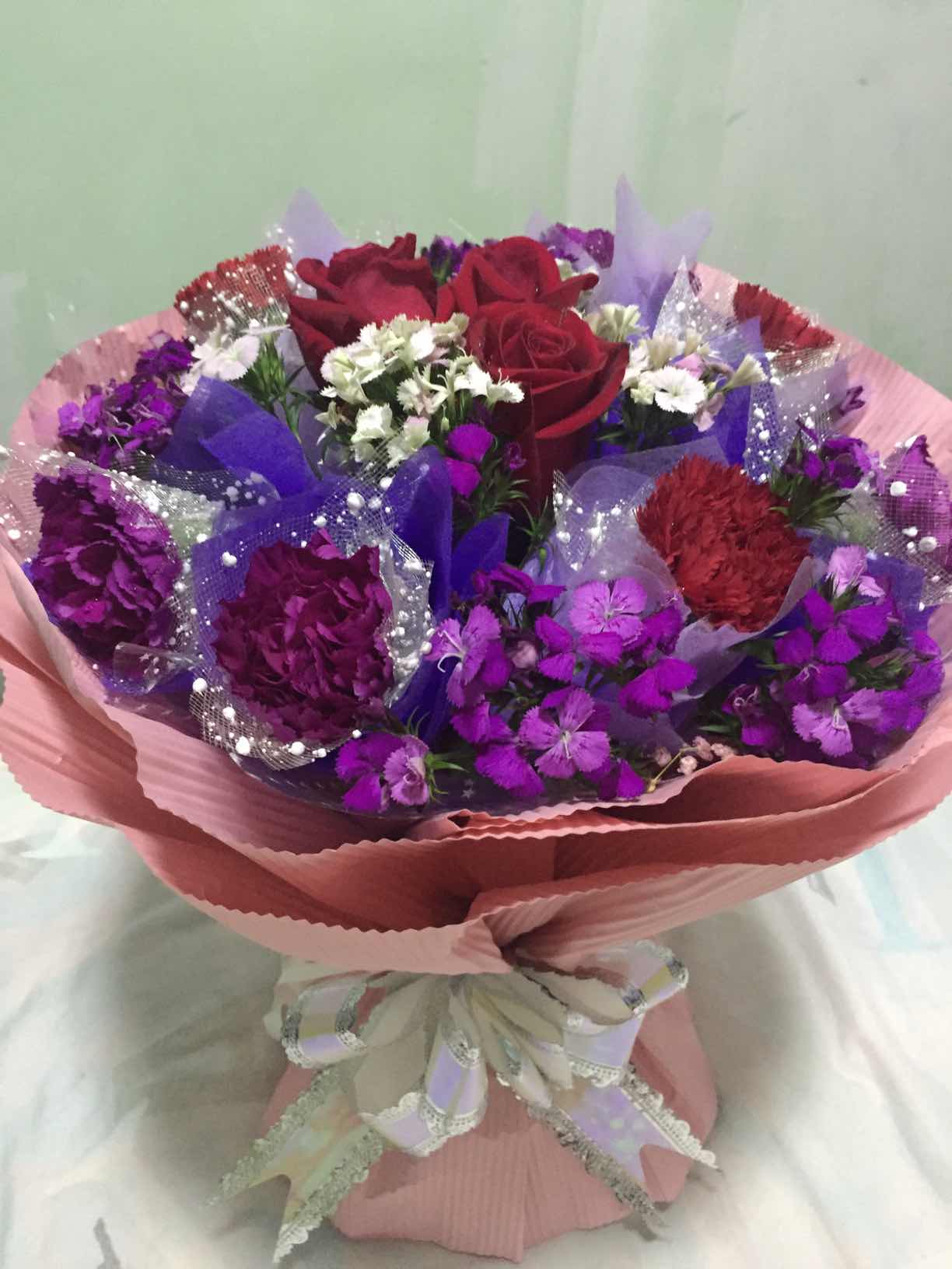 今天跟朋友聚餐,回到家就直接去了卧室,老公笑眯眯的说你到客厅看一下,于是我疑惑的去了客厅,看到一束鲜花放在桌子上,老公说是女儿给我买的,心里顿觉得特别温暖,女儿现在还是学生,花了她不多的实习工资我还是蛮心疼的