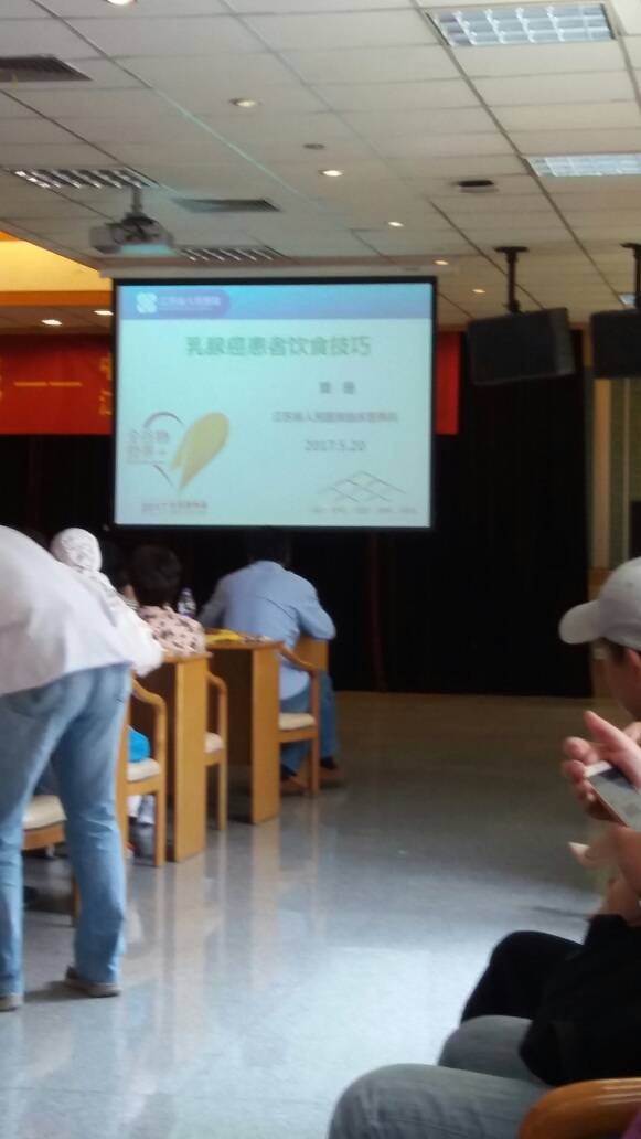 上午在江苏省人民医院河西分院听陈琳主任关于内分泌治疗和肿瘤营养科主任曾珊的讲座,内容丰富,针对性强。也回答了不少患者的提问。讲座是有医院乳腺科组织的,公益性的。
