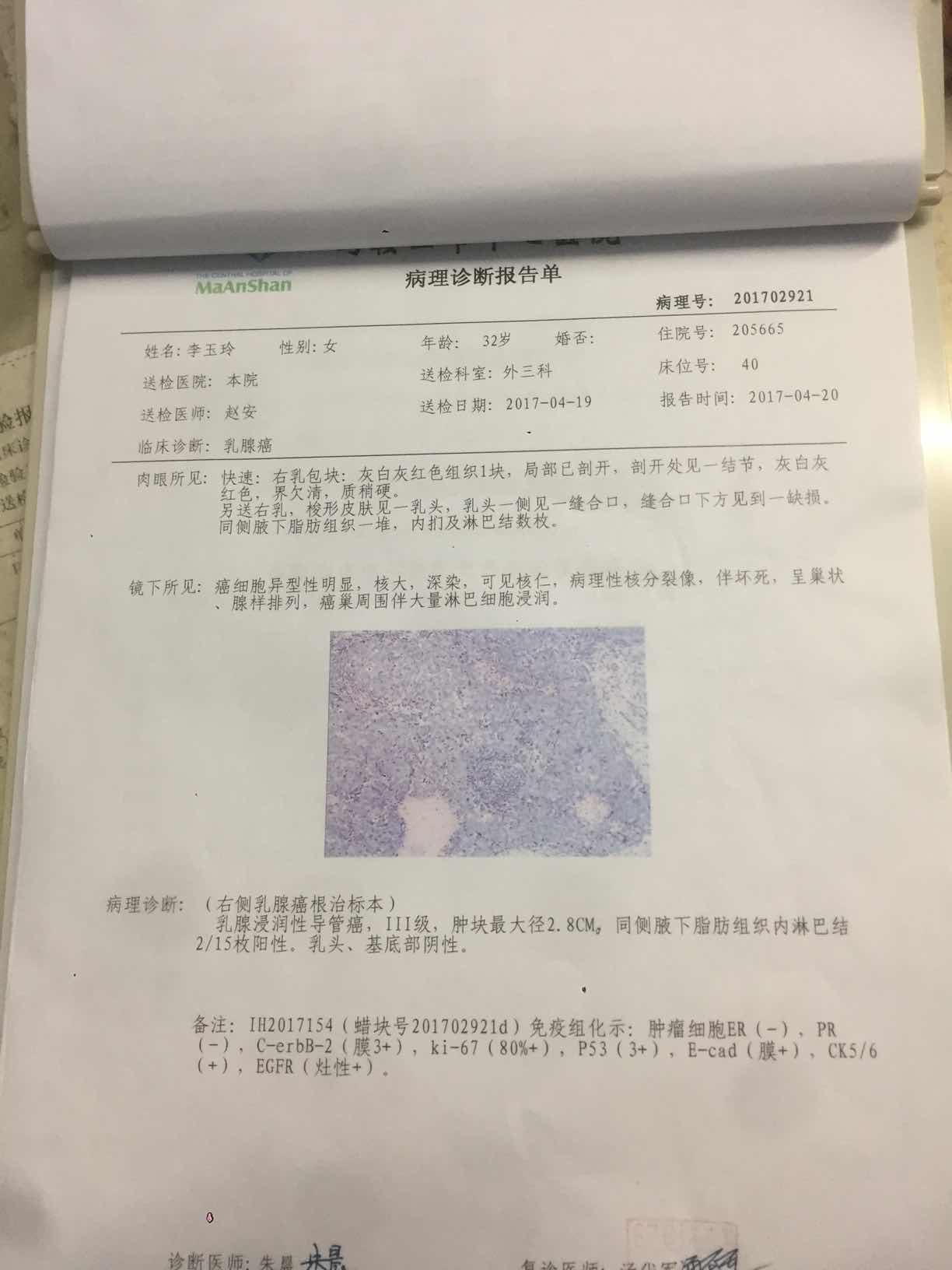 两阴一阳,ki67有80%属于化疗敏感性。有条件的话一定要赫赛汀靶向治疗。