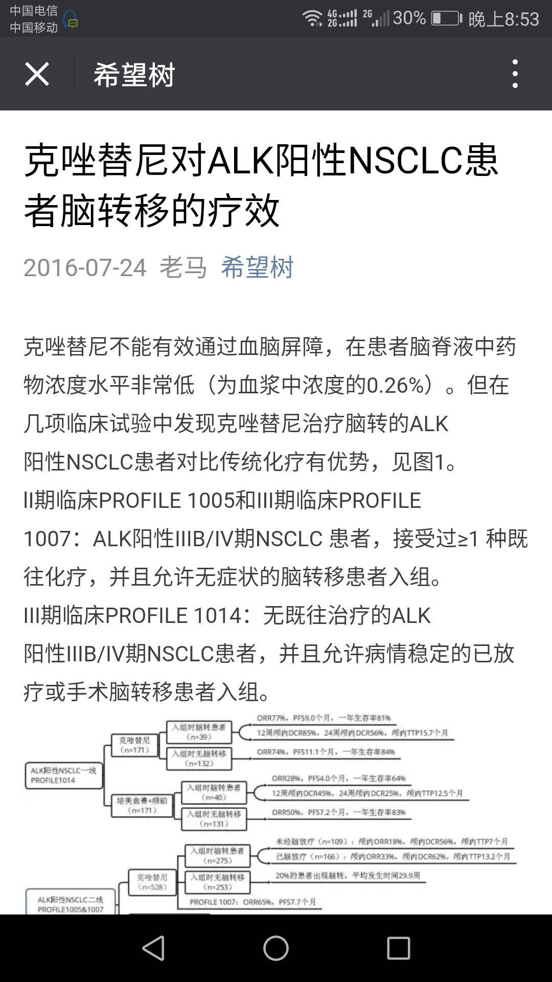 ✔感谢秦川牛、茶一生、农夫哥、SG等觅友,对脑转移鸦胆子油辅助的经验分享; 感谢老马、翔宇、Lee、肿瘤科医生、曹、幸福的家等,对克唑替尼放疗后,突破血脑屏障的可能性分析。