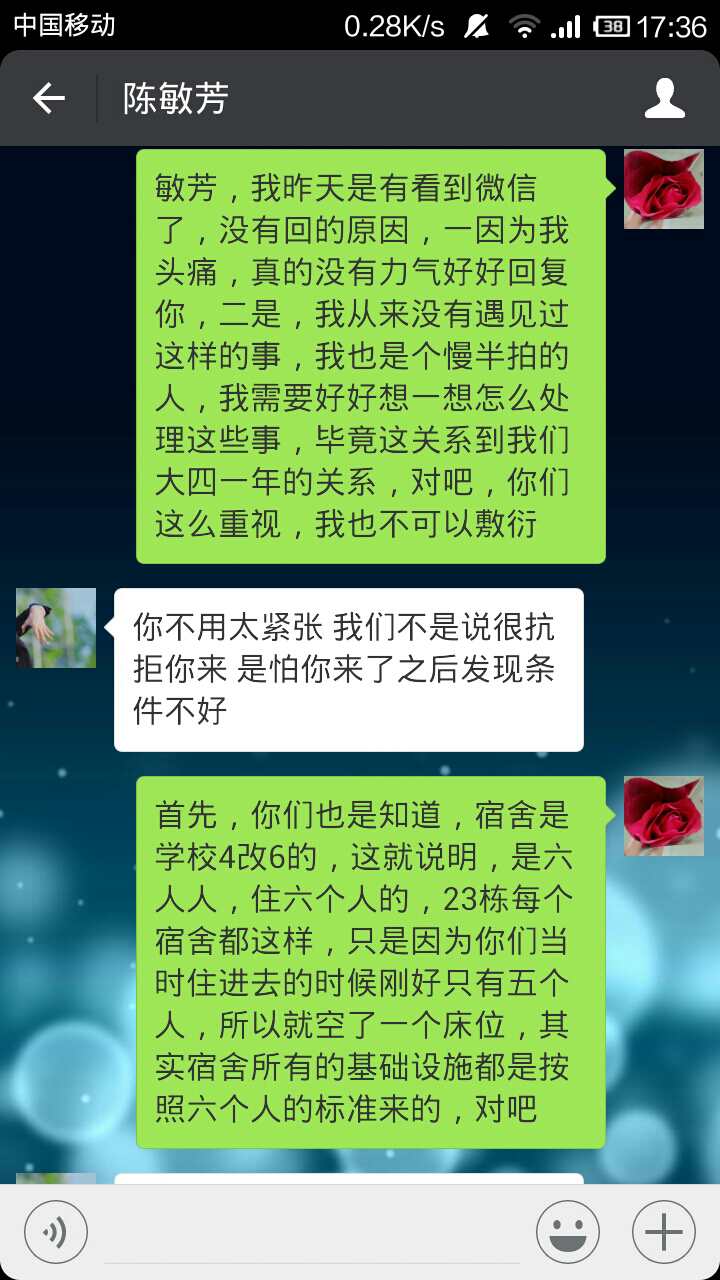我知道宿舍关系这种事,说大不大,说小不小,现在这样