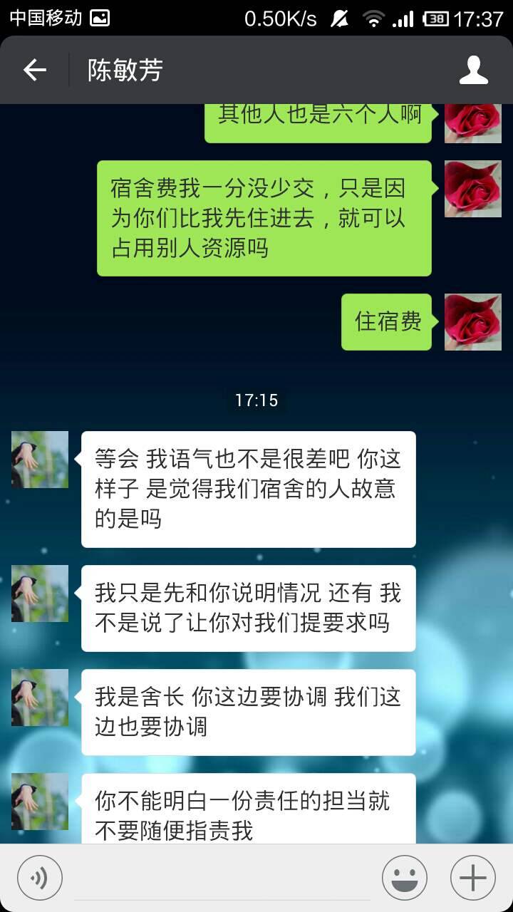 回复的有水平。对方总是强调我们宿舍的人,并不一定其他人都和她想法一样