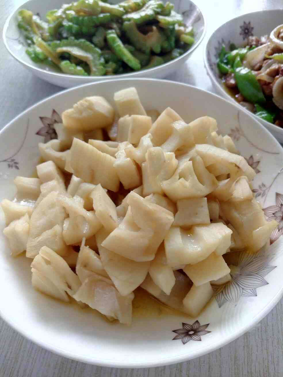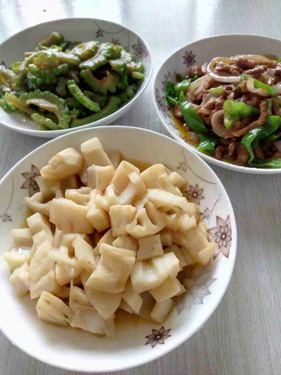 苦瓜藕片儿,元葱炒肉,青椒。不错👍