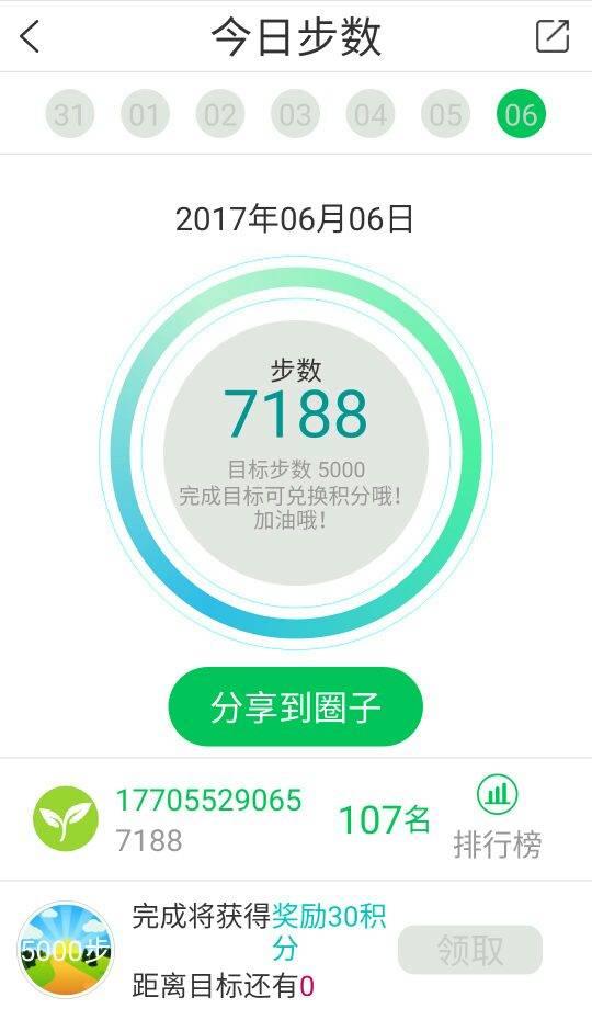 分享我的健康计步,携手健康生活!一起加油!今天终于显示步数了
