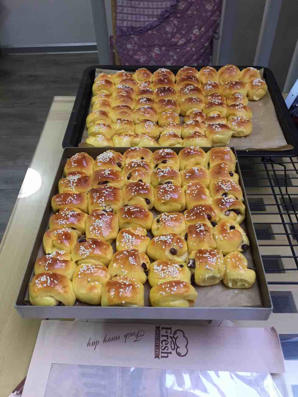 ,在家做些面包,明天带到医院和大夫、护士分享。