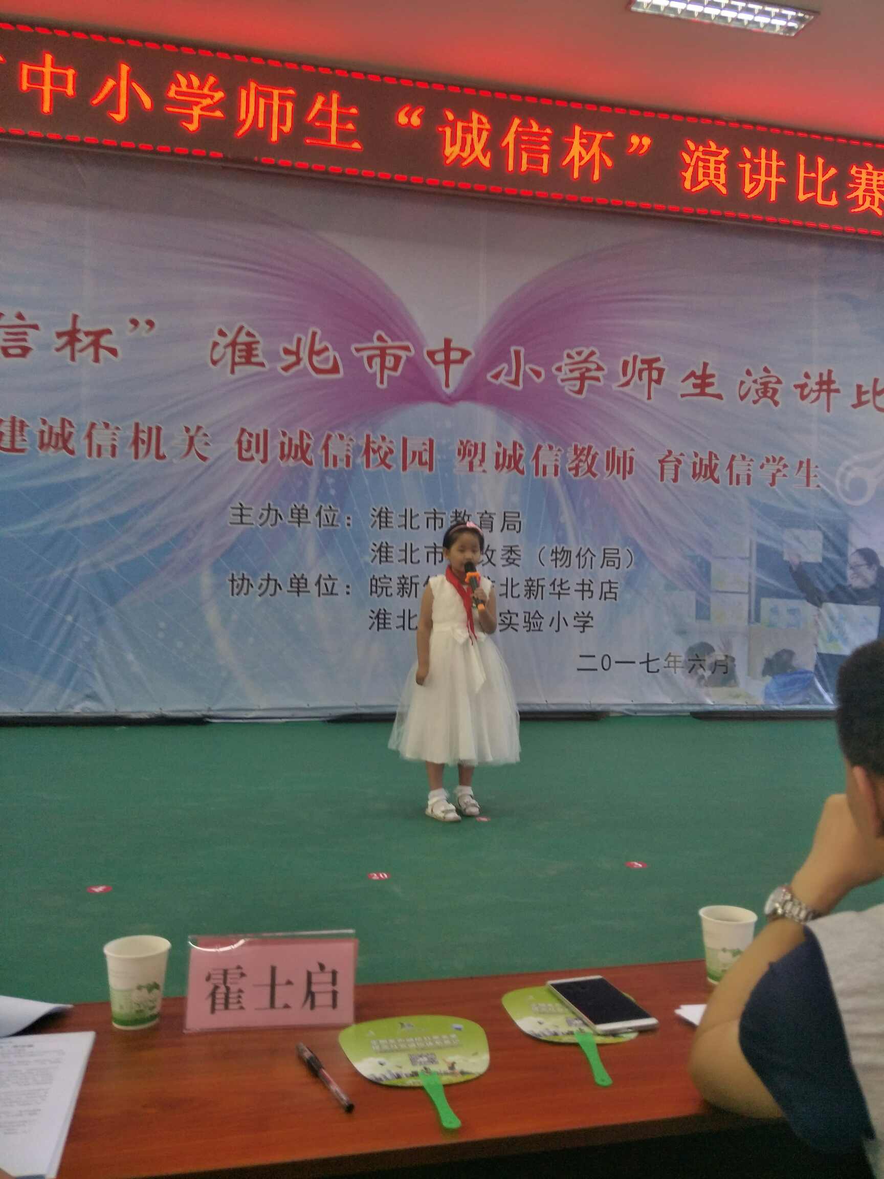 宝贝第一次参加演讲比赛,很棒!小学组全市第五名,三等奖。没有参加过演讲培训班,我给指导的,要是经过专业老师调教调教,效果会更好。一点都不怯场,很能hold住舞台,我很满意。