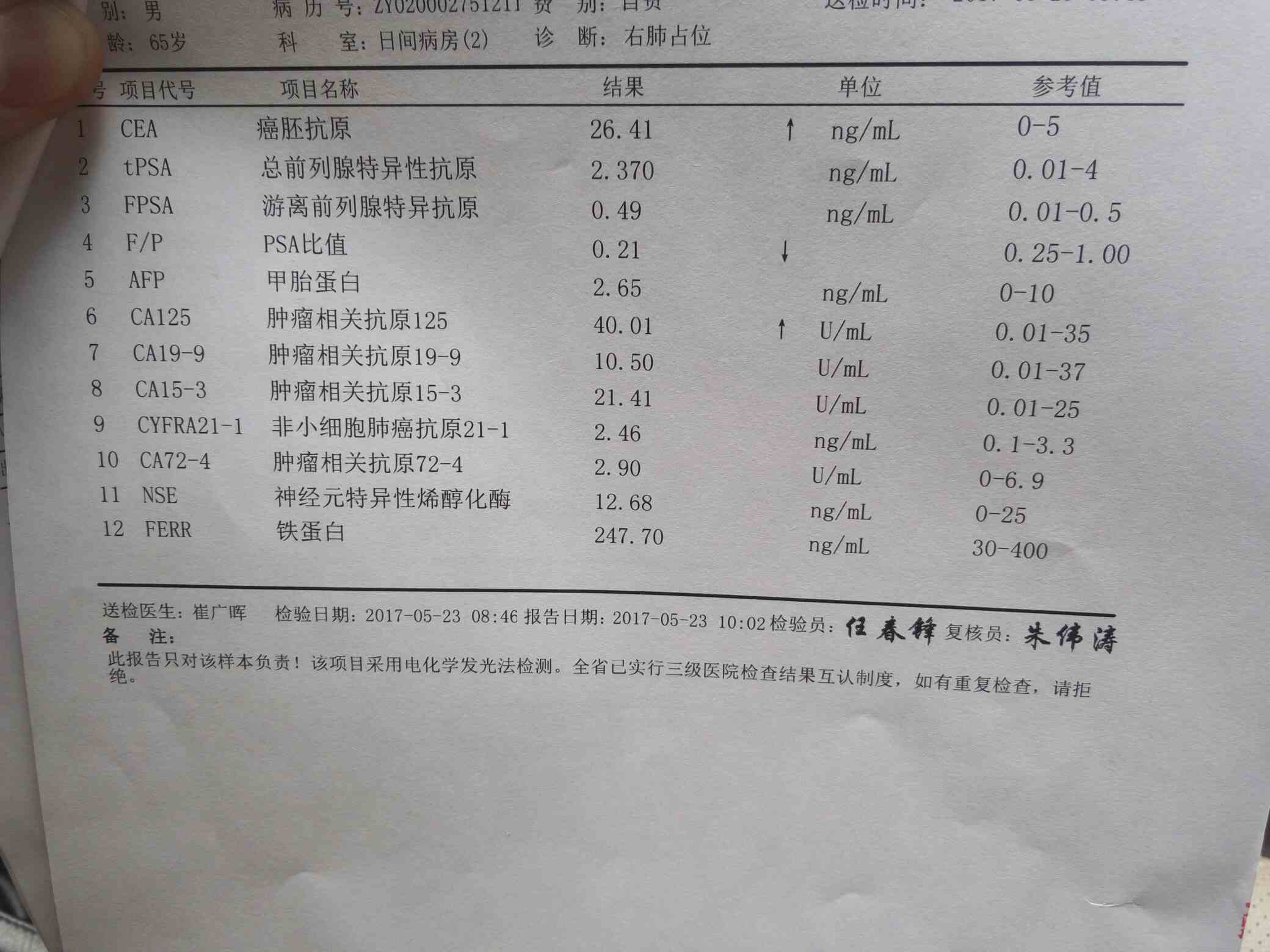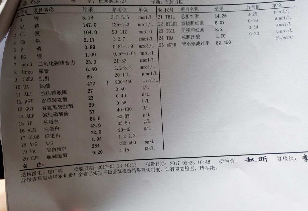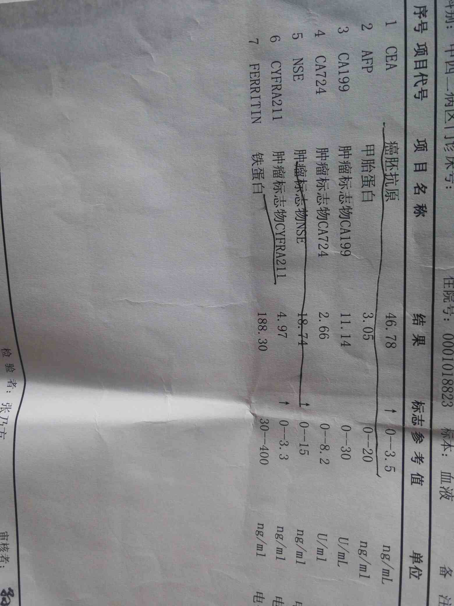 对比下癌胚抗原从46多降到26多,尿酸增高,麻烦各位帮忙看下整体效果如何!前两张为4 月是服用