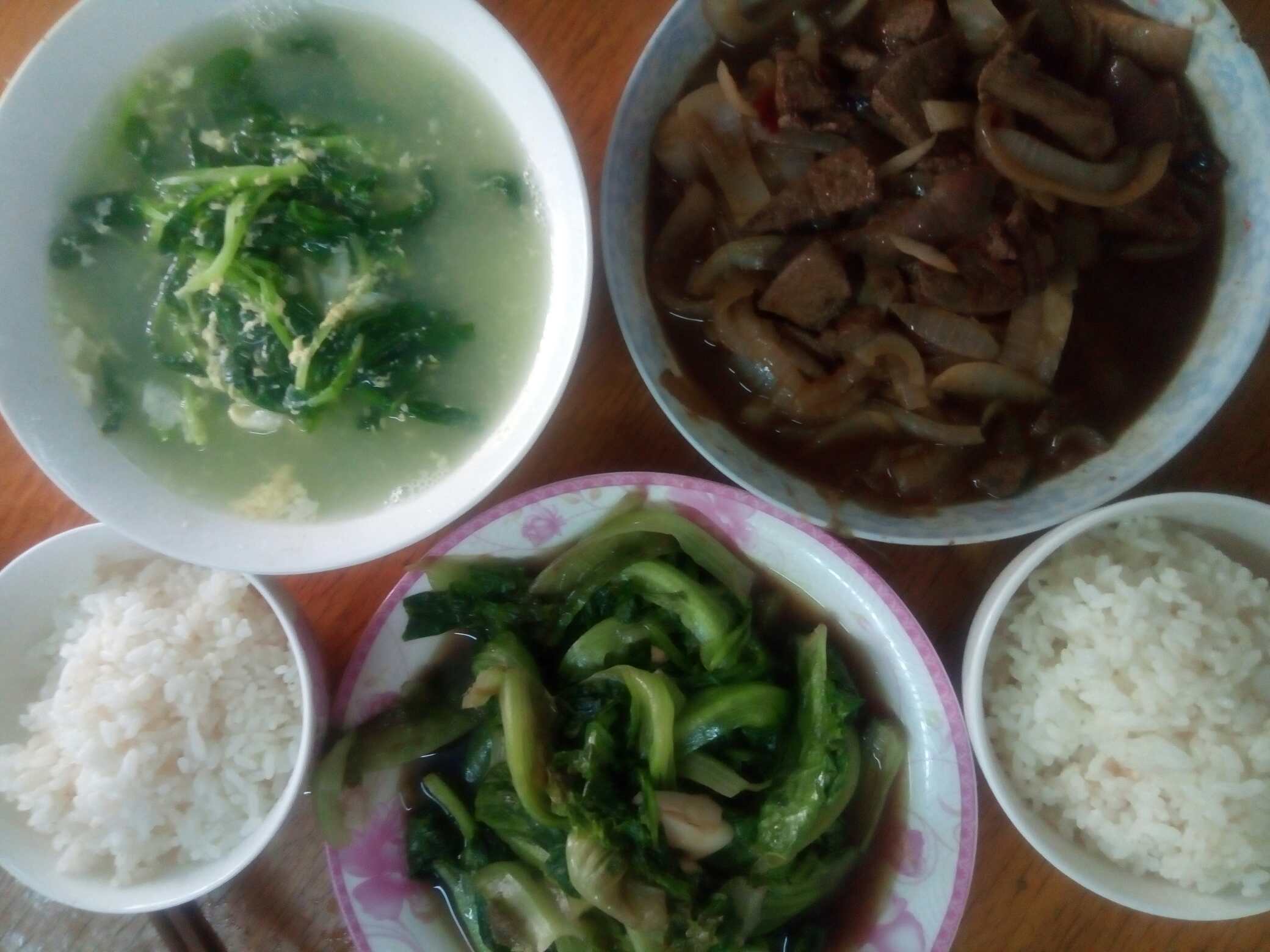 今天午饭清淡饮食,我的菜生菜,青菜鸭蛋汤,爸妈的菜洋葱猪肝~三人吃精光,我妈说我吃的最多,我醉了,最近可能要胖的节奏~😂