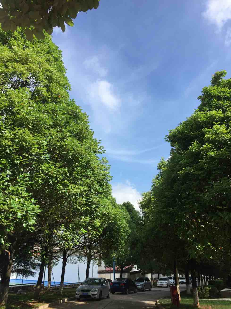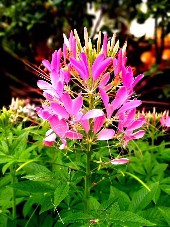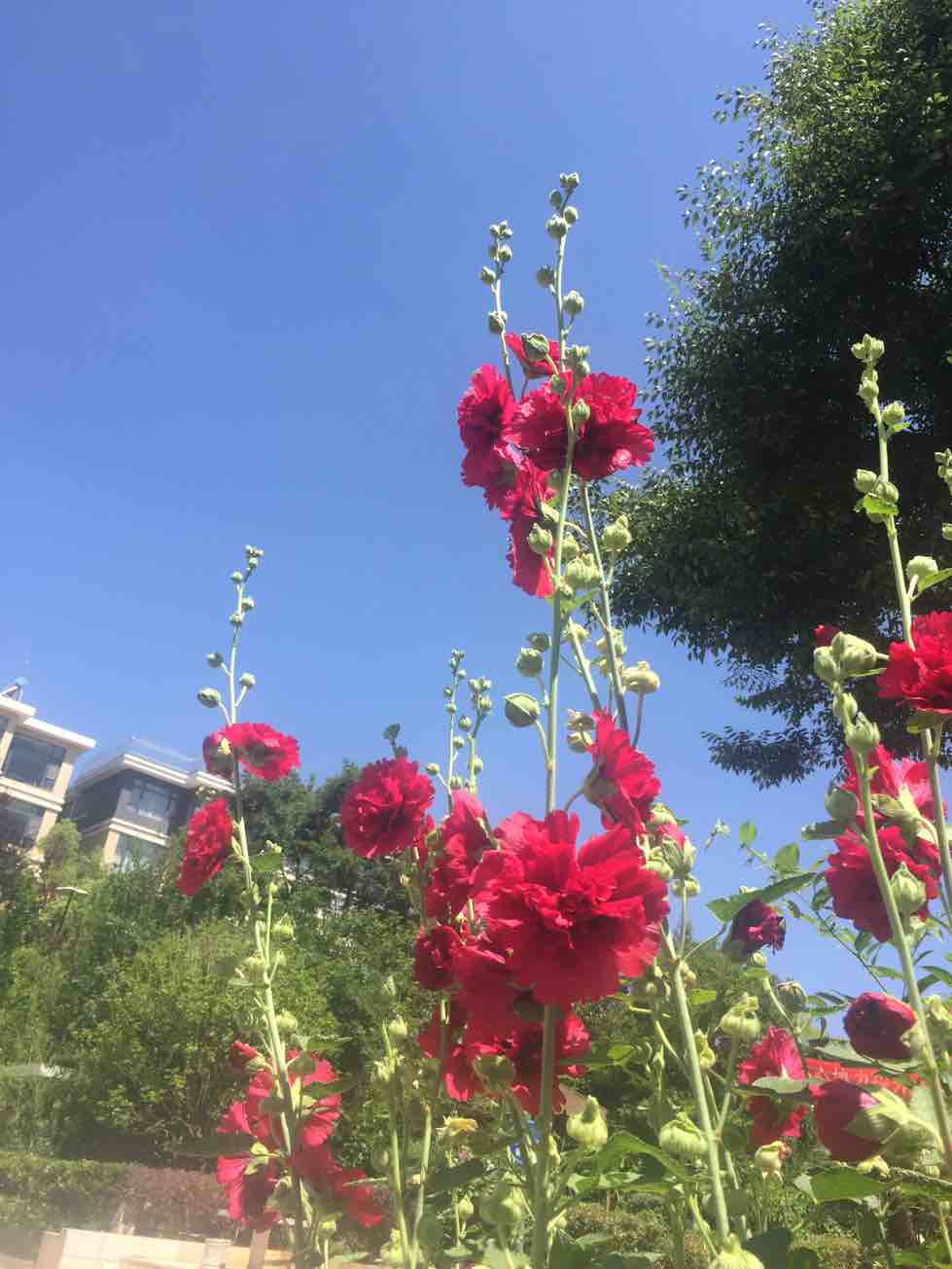 天蓝,花美,人更美。