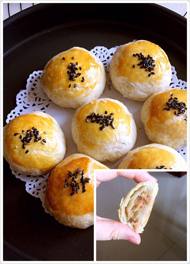这是第三次做酥皮点心,虽然油皮的水有点多,不过也比前两次好了,前两次都是因为油皮的面硬了,导致成品有点糟糕,以至于我都懒得刷蛋液和拍照,这次的馅料刚出锅时挺好吃,不知道凉了味道如何……