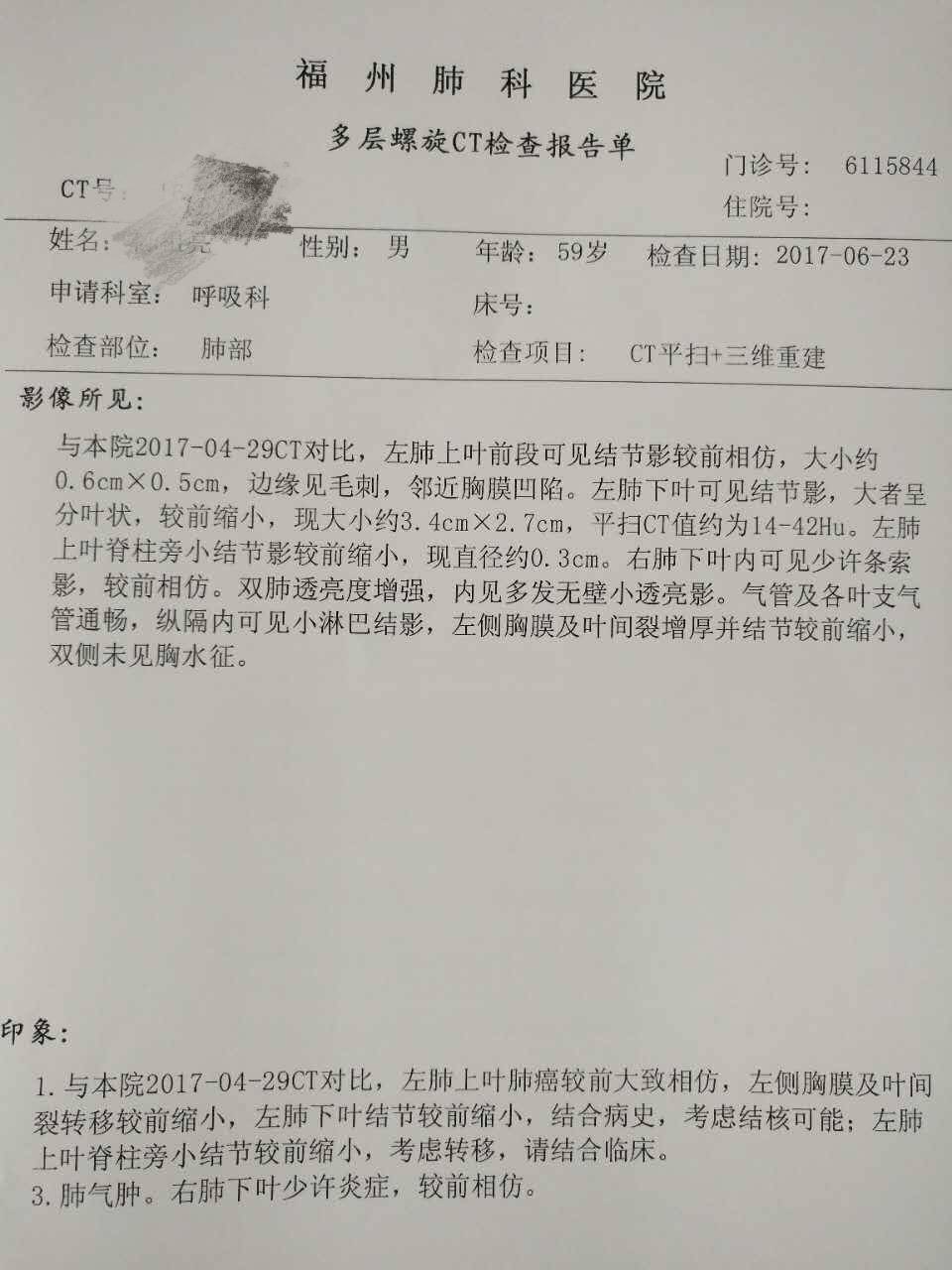 拿到报告那刻,悬着的心终于放下,所有的情况都在好转,包括结核也在缩小,同时说明了它不是个单纯的结核,真是个狡猾的家伙。