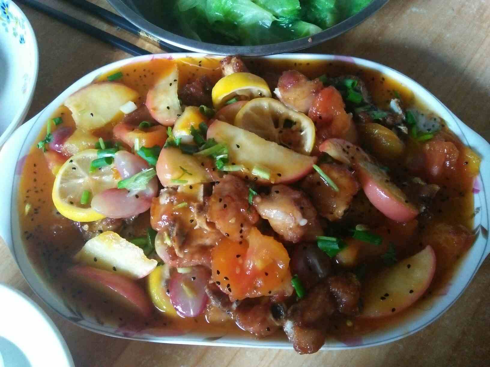 这个水果菜第一次见,好像有苹果,不知道炒着好吃不?