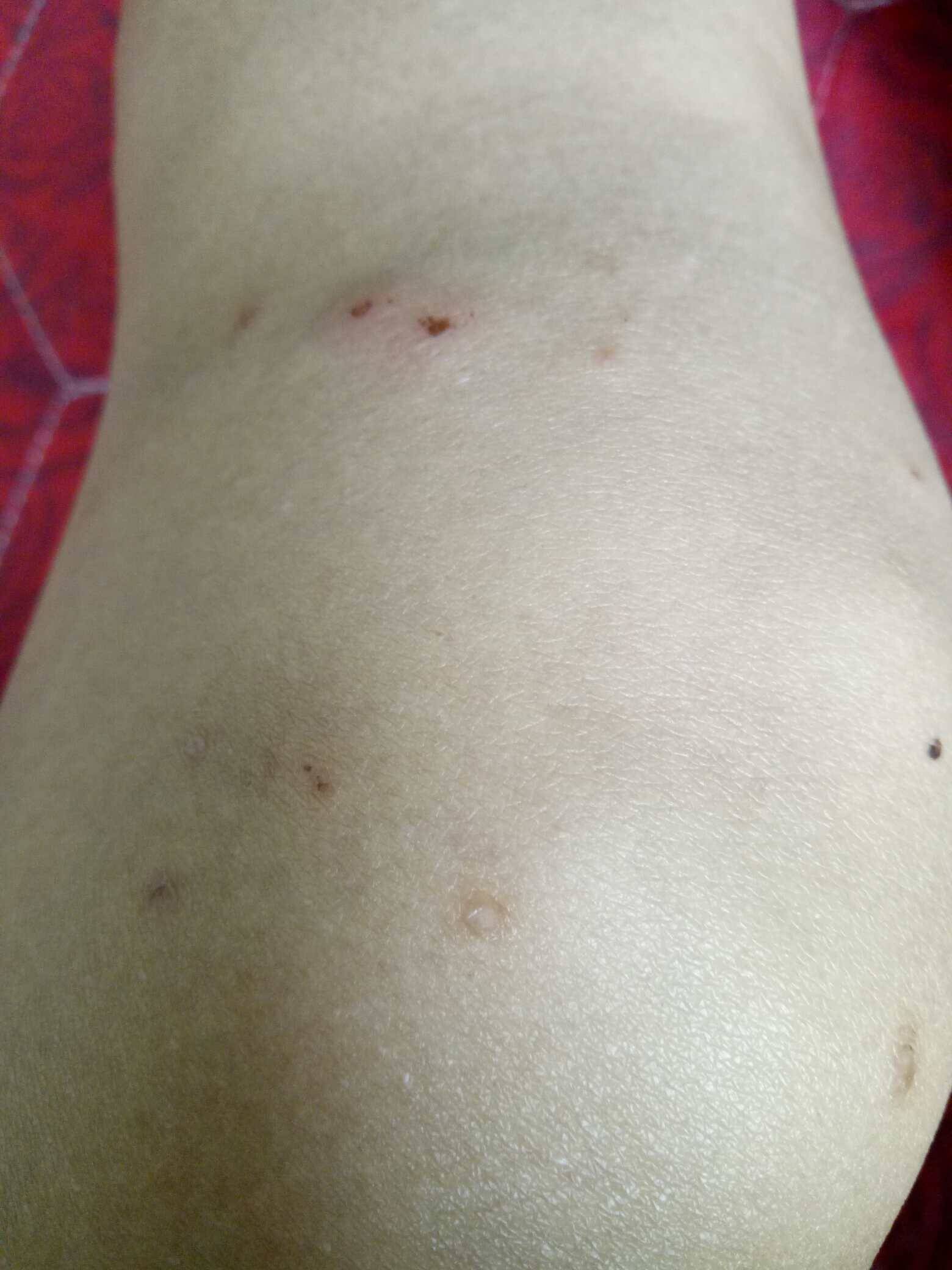 看你都挠破了,一定好难受,希望药起作用别再让可恶的小豆豆再出来