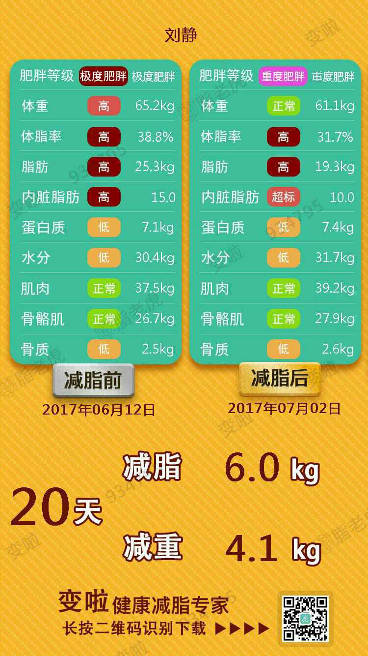 恭喜减肥初见成效~希望早日如你所愿~我看你骨质比较低,要继续补钙哦~加油!