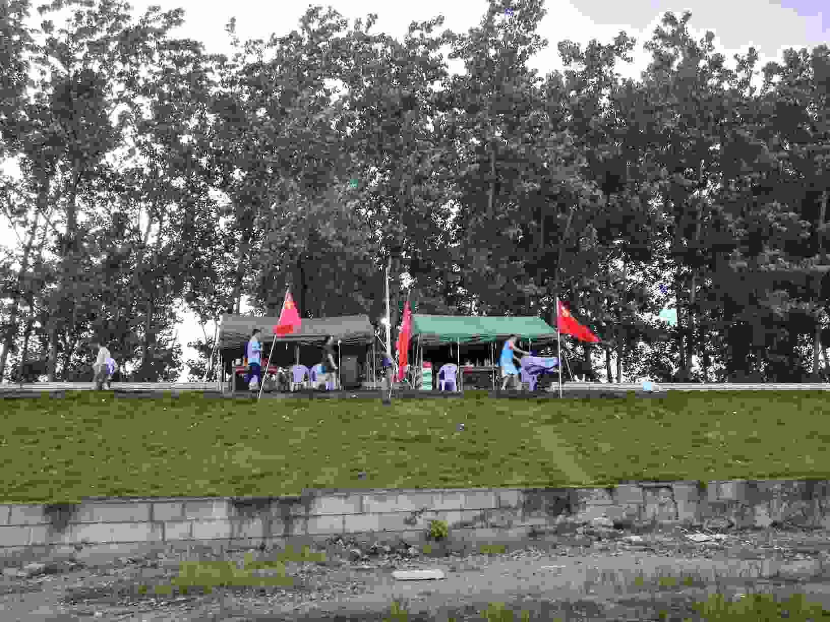 今天散步到江边看水情,堤坝上各单位的防洪帐篷已搭建好,人员都在值班,站在大堤上看,貌似长江水位要高于堤坝内的马路,看了今年的防洪工作刻不容缓,辛苦了抗洪一线的同志们!