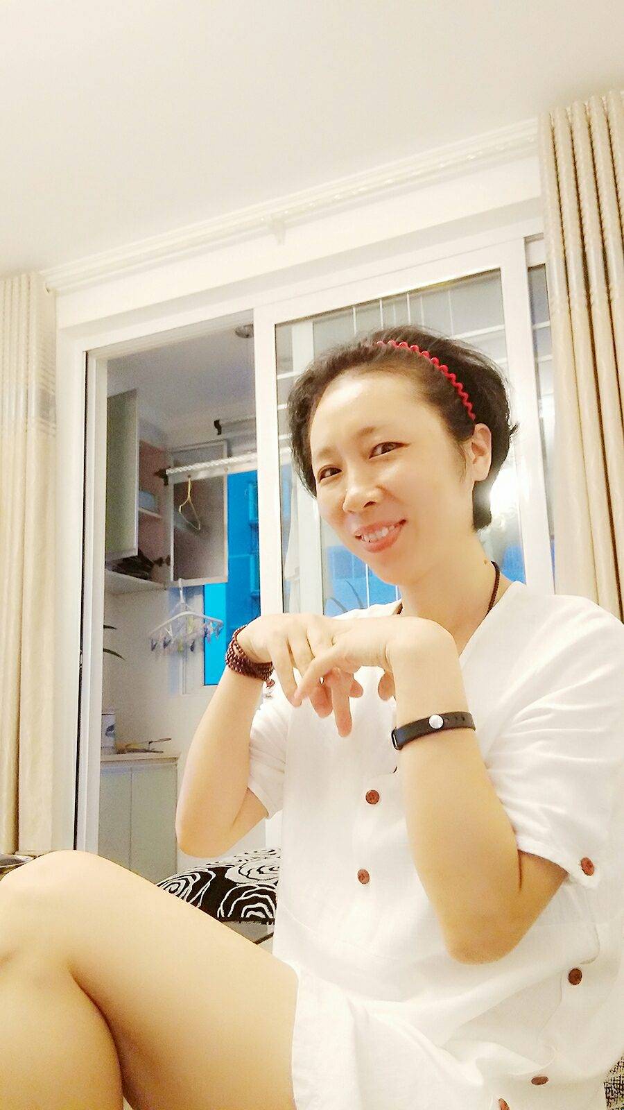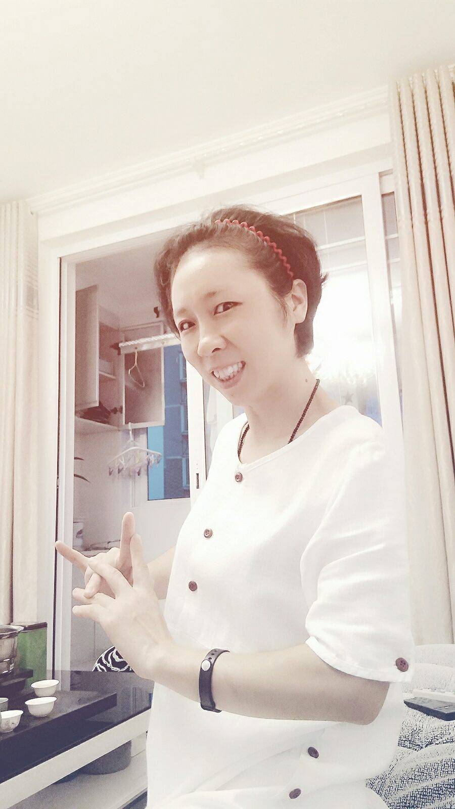 你带发箍很好看,我戴像个村姑