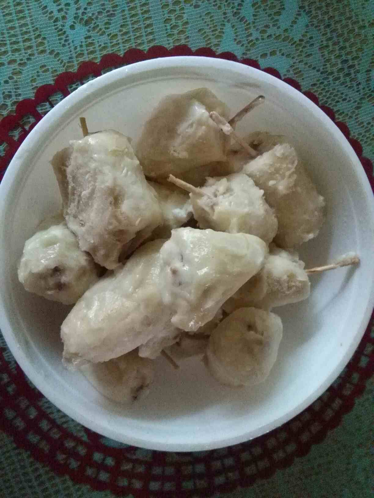 香蕉奶糕横空出世,配方,香蕉小段,沾上酸奶,有面包屑的洒上,我这是香蕉酸奶味,味道美极了,环保酸奶糕,我们吃的