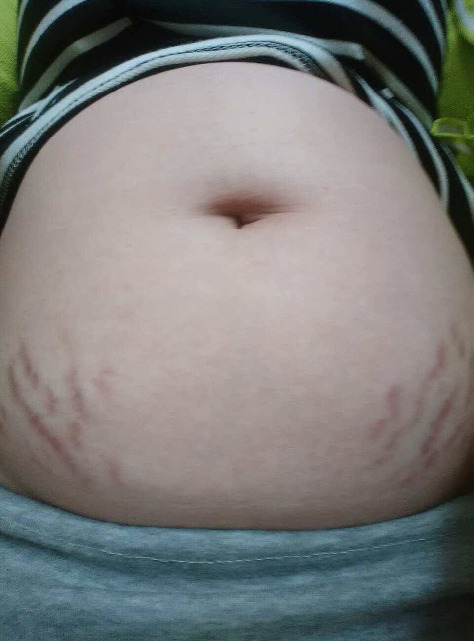 擦点橄榄油,其实应该肚子开始大就擦,就没这么严重了